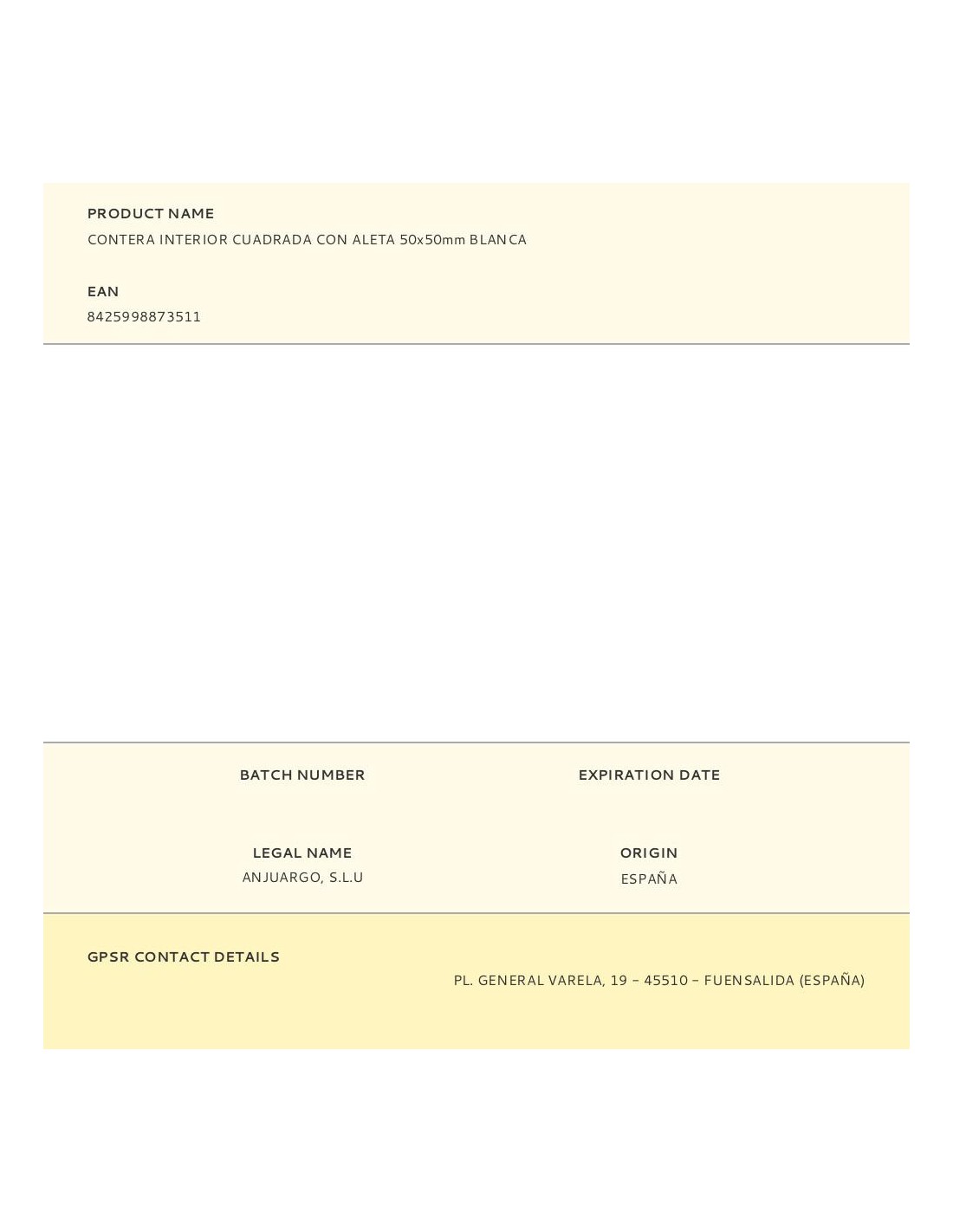 Contera interior cuadrada con aleta 50x50mm blanca