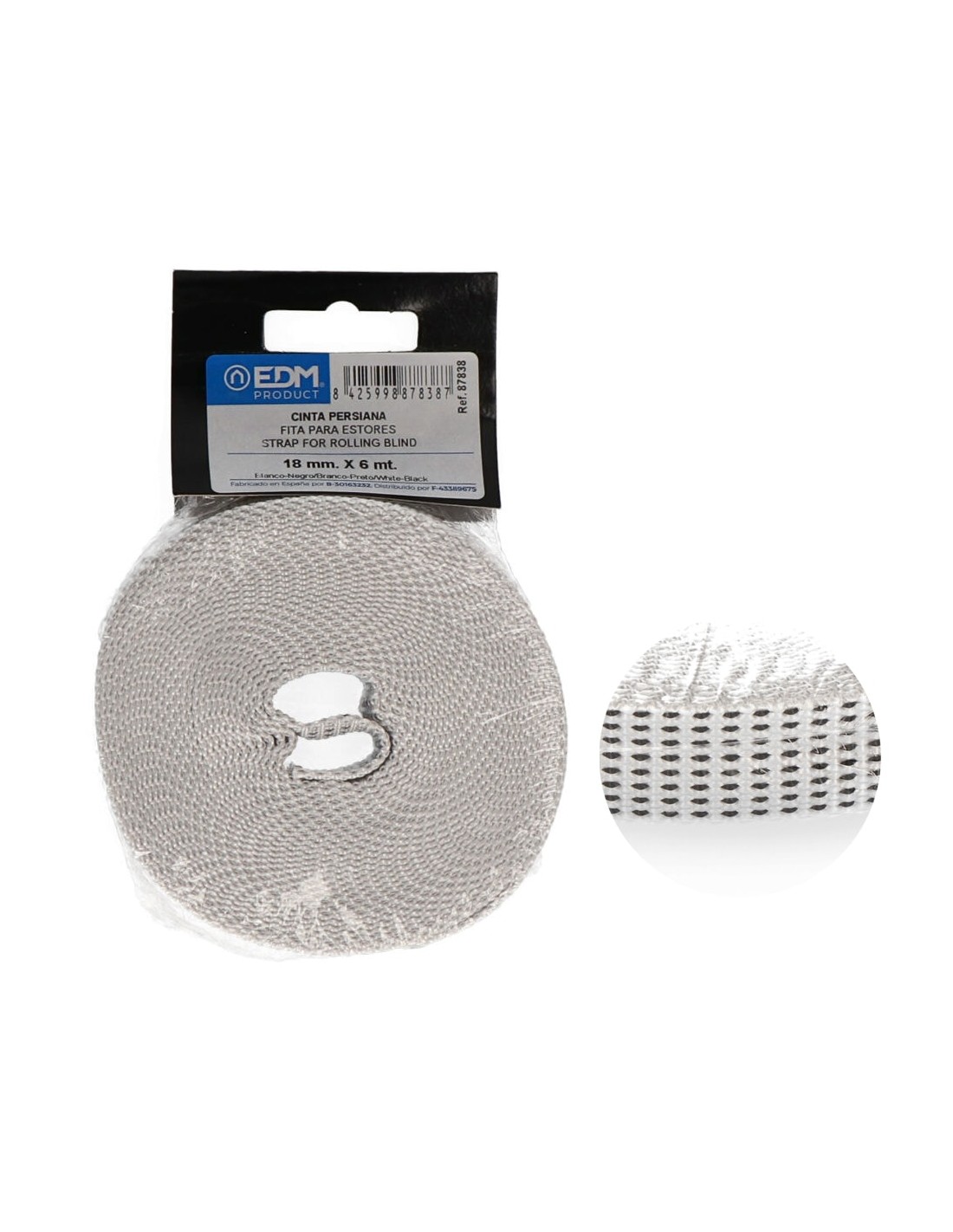 Cinta persiana compacto blanco / negro composicion: cintas tejidas con hilo de polipropileno 100%. caracteristicas: flexible, buena resistencia al roce, suave al tacto, facil limpieza. 18 mm x 6 m