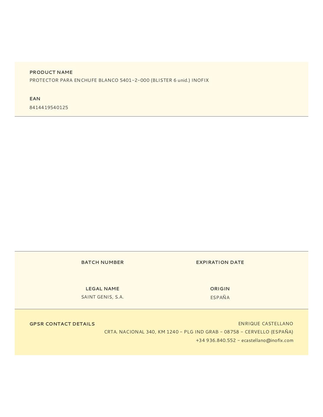 Protector para enchufe blanco (blister 6 unid.) inofix