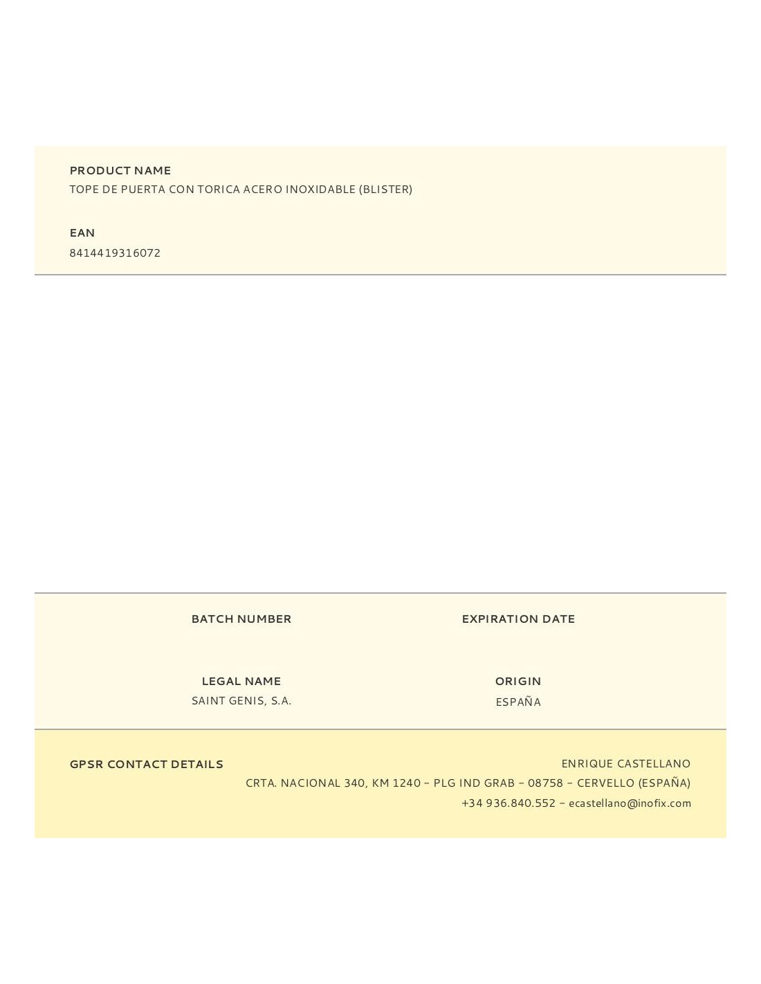 Tope de puerta con torica acero inoxidable (blister) inofix