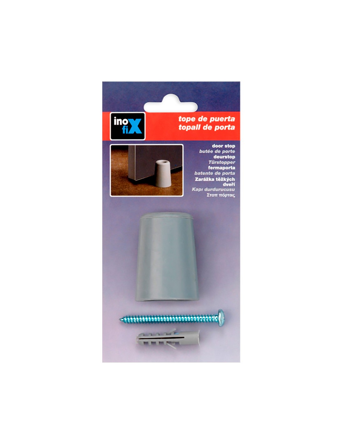 Tope de puerta alto caucho gris (blister) inofix