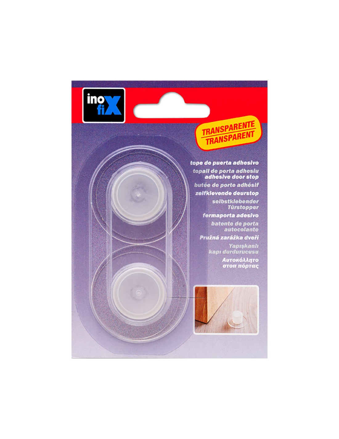 Tope de puerta adhesivo cilindro transparente (blister 2 unid.) inofix
