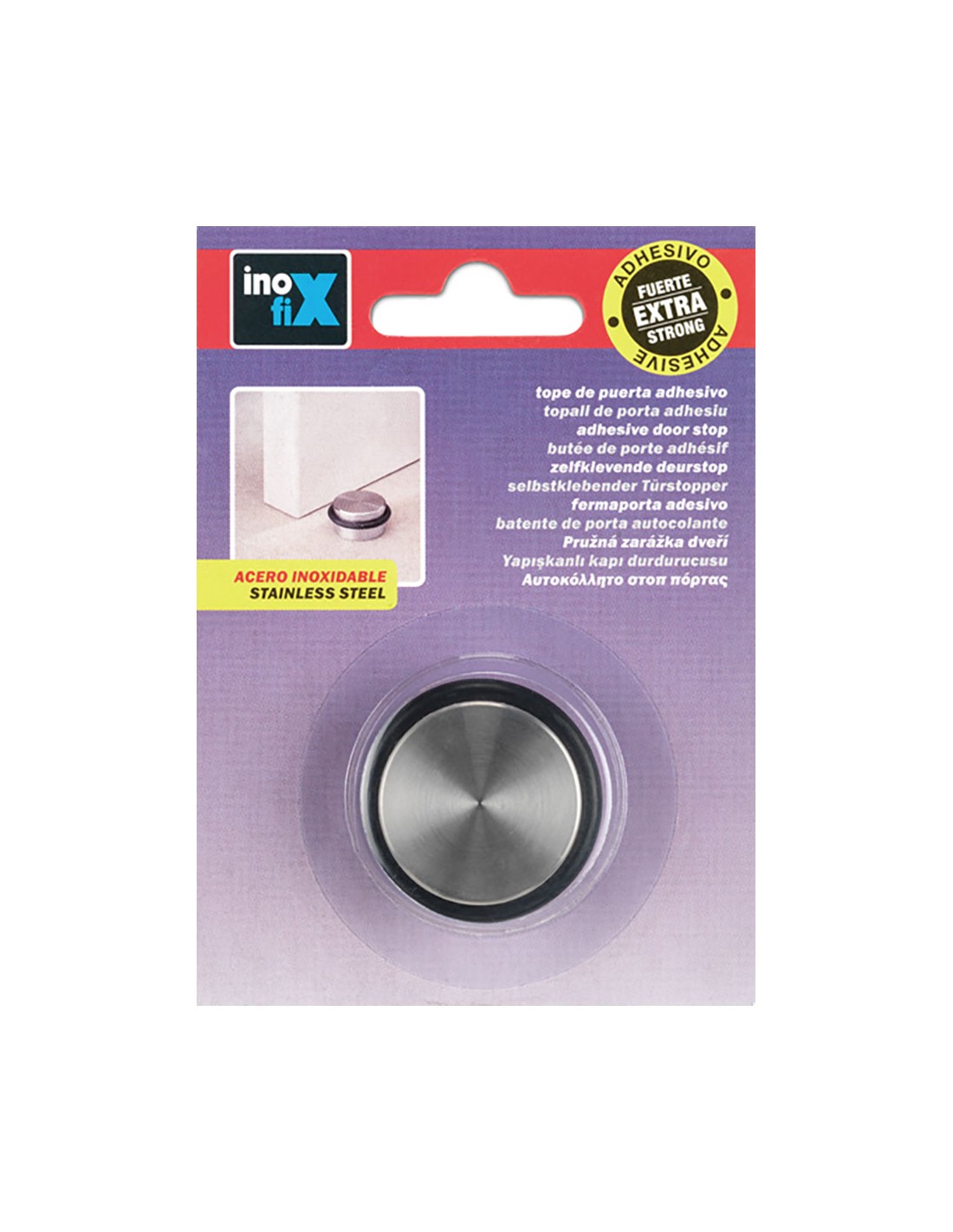 Tope cilindrico acero inoxidable con adhesivo extra fuerte (blister) inofix