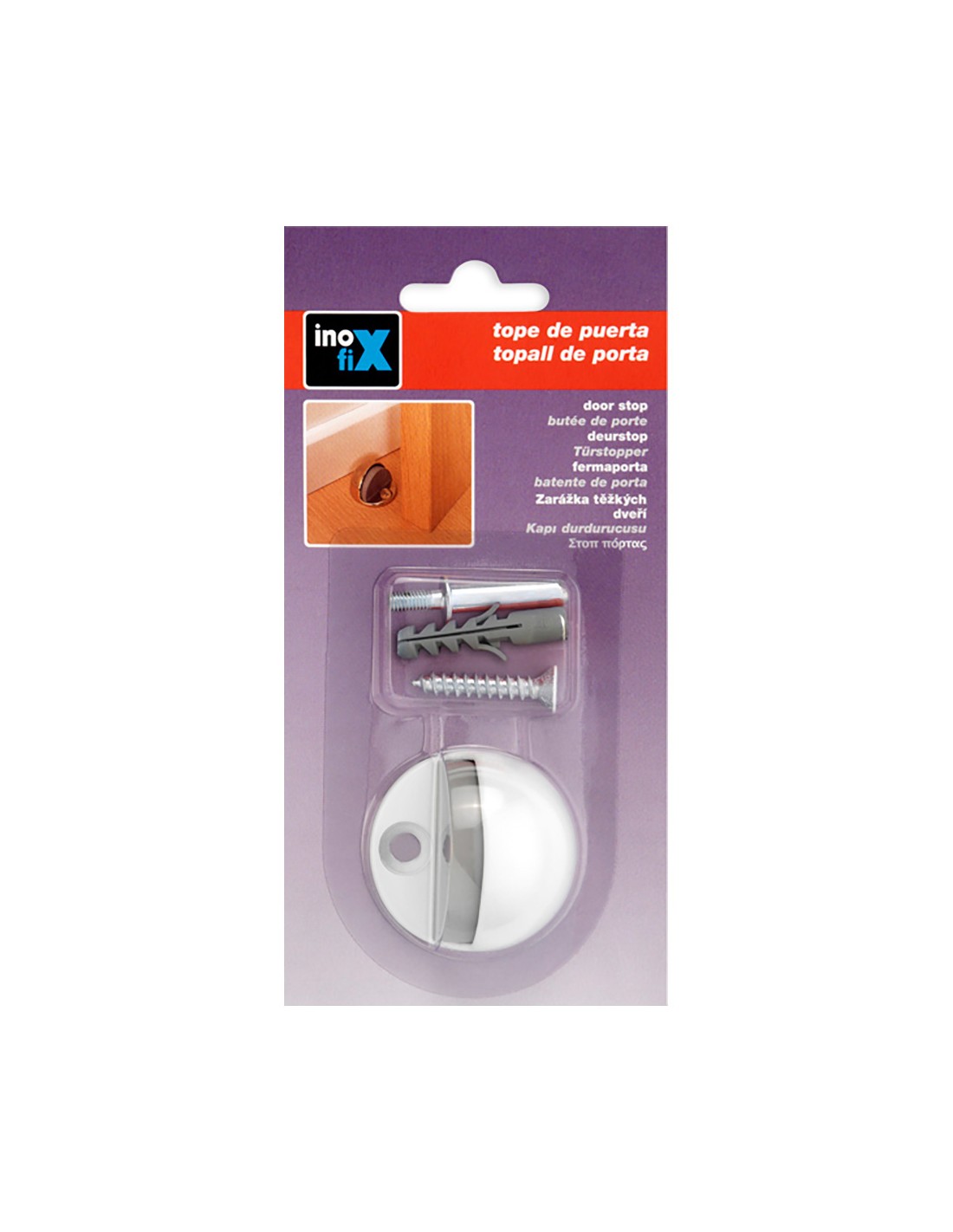 Tope puerta metalico con tornillo blanco (blister) inofix