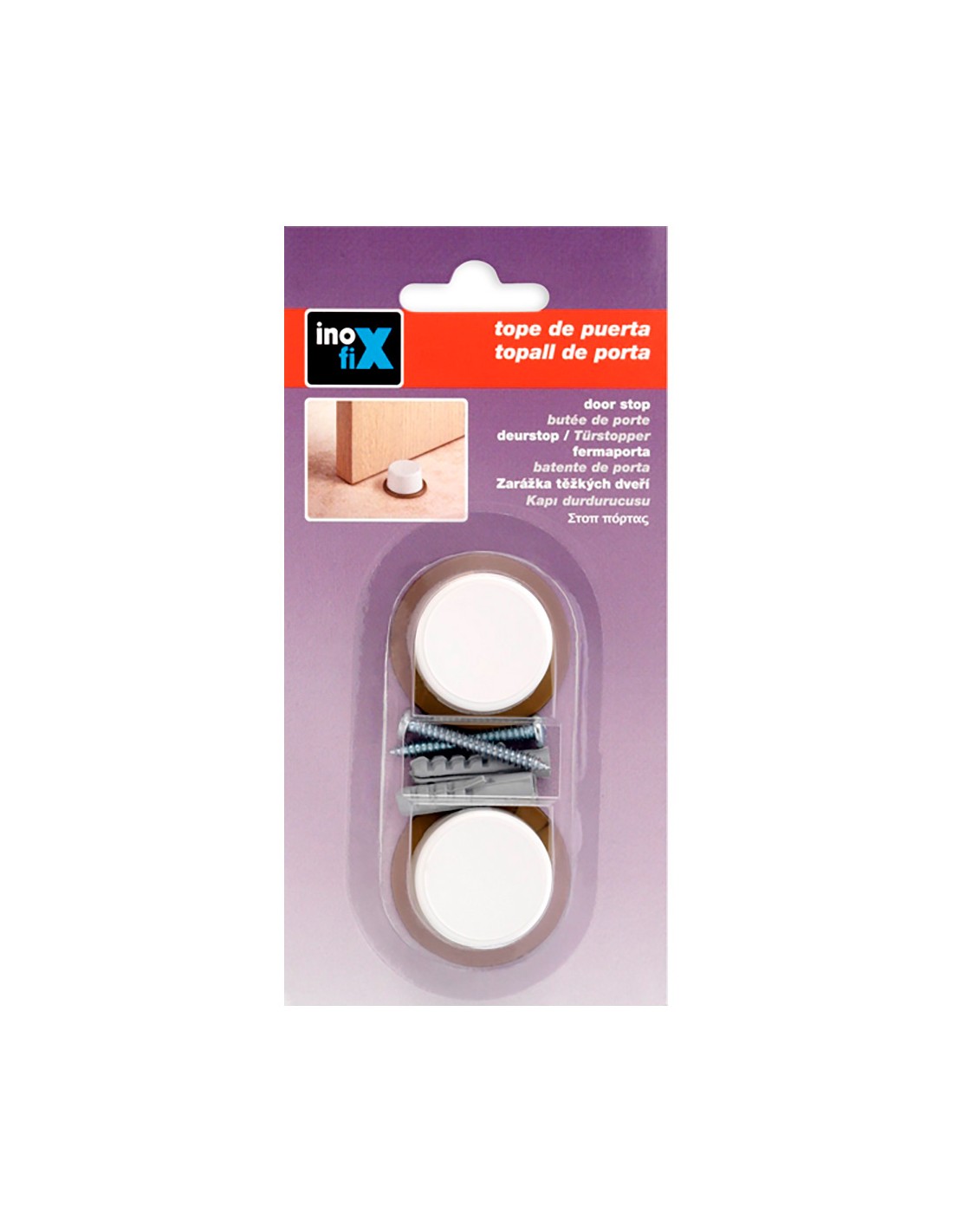 Tope de puerta con tornillo blanco (blister 2 unid.) inofix