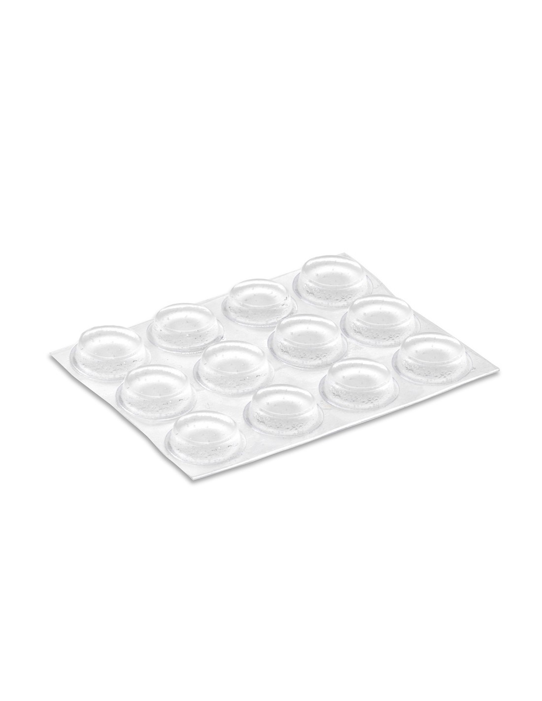 Gota autoadhesiva protectora ø12,7x3,5mm (blister 14 unid.) transparente de poliuretano.gran poder de amortiguación de golpes y vibraciones.adhesivo de base acrílica apto para múltiples superficies. antideslizante, alto coeficiente de fricción. no mancha ni estropea las superficies. inofix