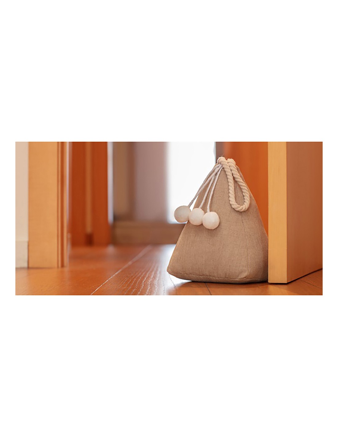 Tope textil sujetapuerta 1kg saco beige. tejido textil de poliéster rellenados de algodón sintético y arena, muy útiles y prácticos de usar.perfectos para prevenir portazos por corrientes de aire, además de destacar como un elemento decorativo en el hogar.18x13x14cm. inofix