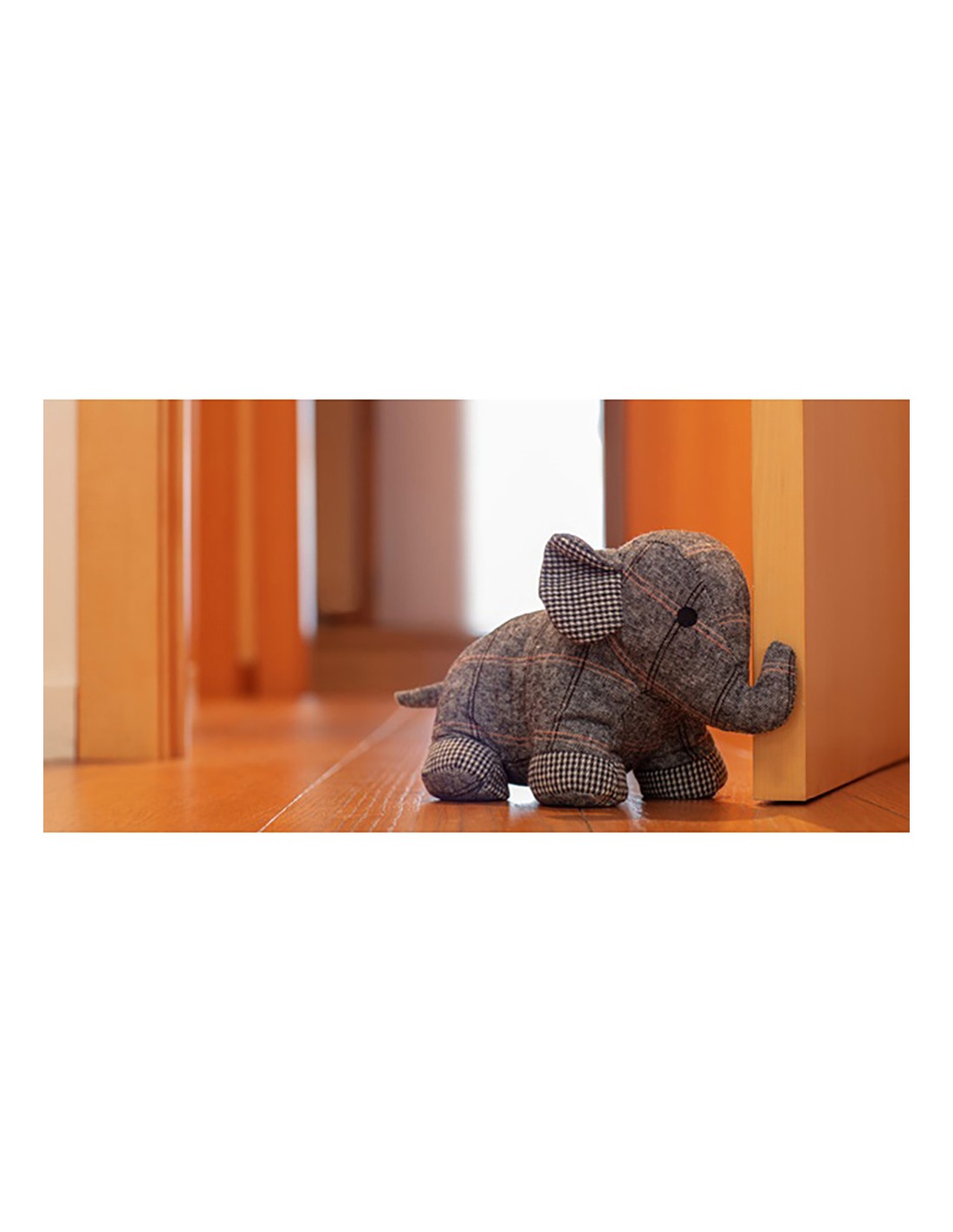 Tope textil sujetapuertas 1kg elefante gris. tejido textil de poliéster rellenados de algodón sintético y arena, muy útiles y prácticos de usar.perfectos para prevenir portazos por corrientes de aire, además de destacar como un elemento decorativo en el hogar. 18x32x15cm. inofix