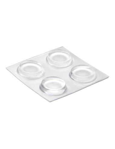 Gota autoadhesiva protectora ø19x4mm (blister 4 unid.) transparente de poliuretano. gran poder de amortiguación de golpes y vibraciones. adhesivo de base acrílica apto para múltiples superficies. antideslizante, alto coeficiente de fricción. no mancha ni estropea las superficies. inofix