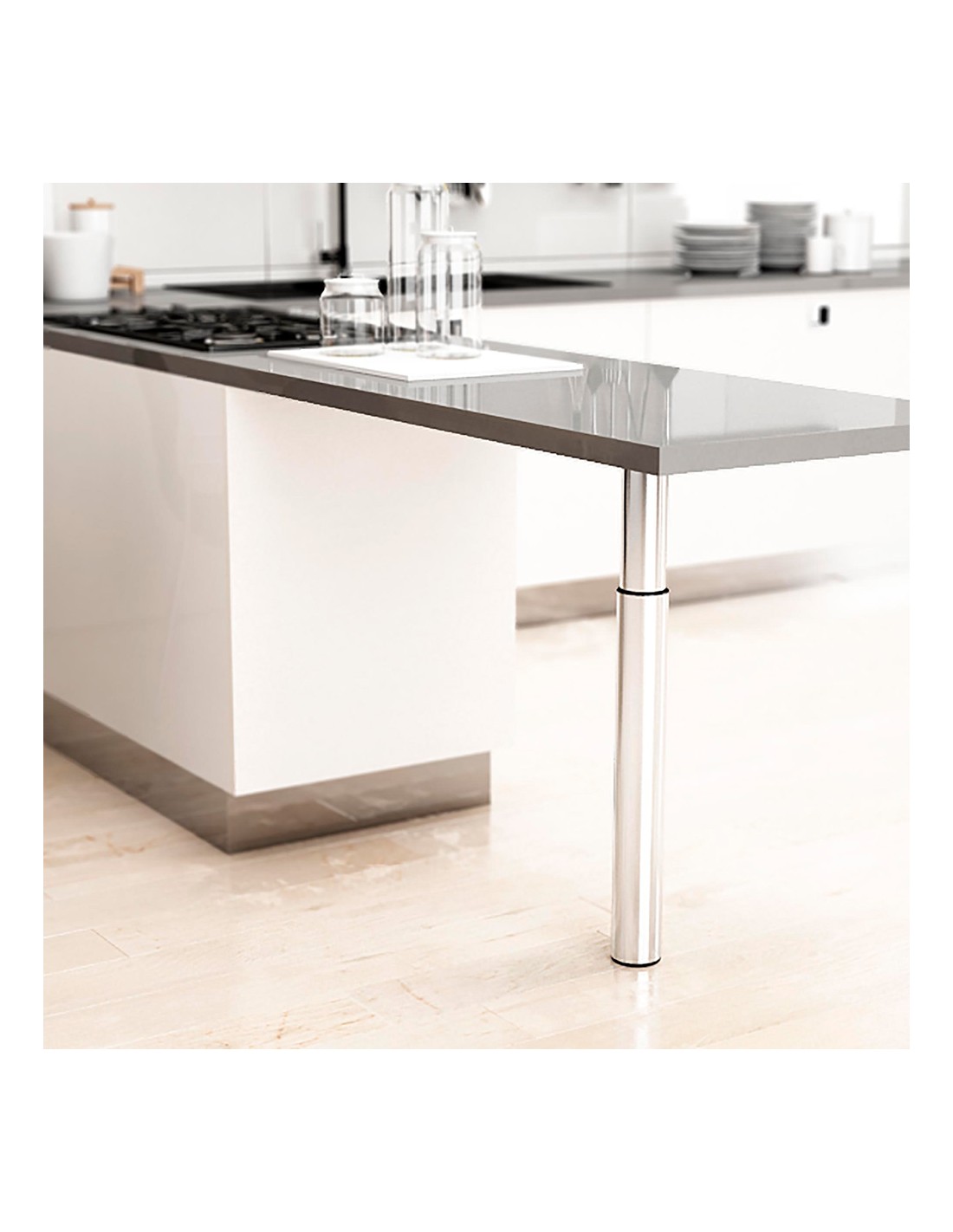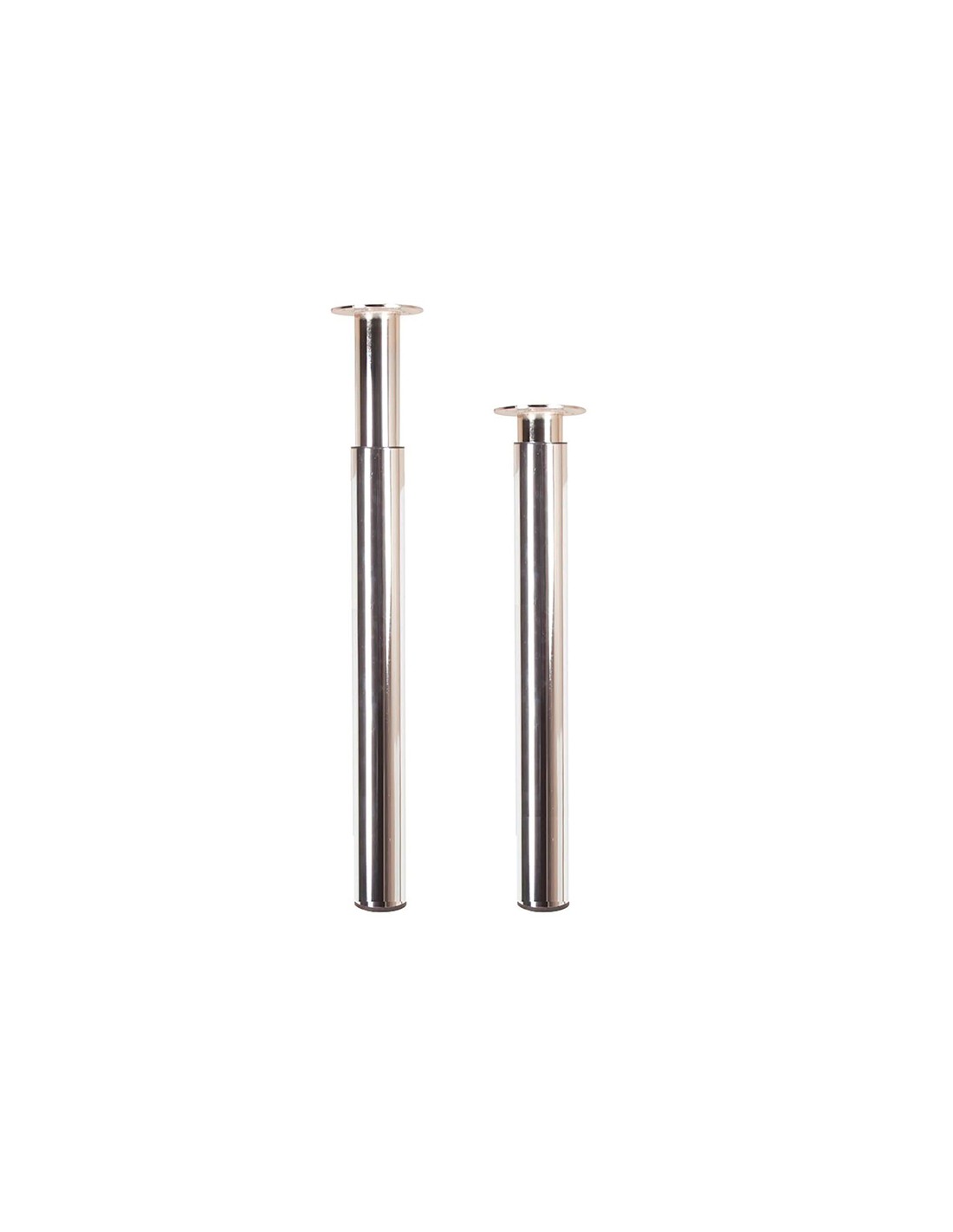 Pata extensible de acero cilíndrica de estilo moderno para mesas y encimeras. gracias a la versatilidad de este modelo es adecuada para una gran variedad de proyectos de bricolaje, diy o restauración, así como para todo tipo de muebles del hogar o espacios comerciales. altura de la pata 71/110cm. fabricado en acero en acabado cromo brillo. sistema de fijación atornillado. espiga metálica de fijación de métrica 10. dimensiones: ø6x71cm/110cm (diámetro/alto). peso máximo recomendado: 75kg. rei