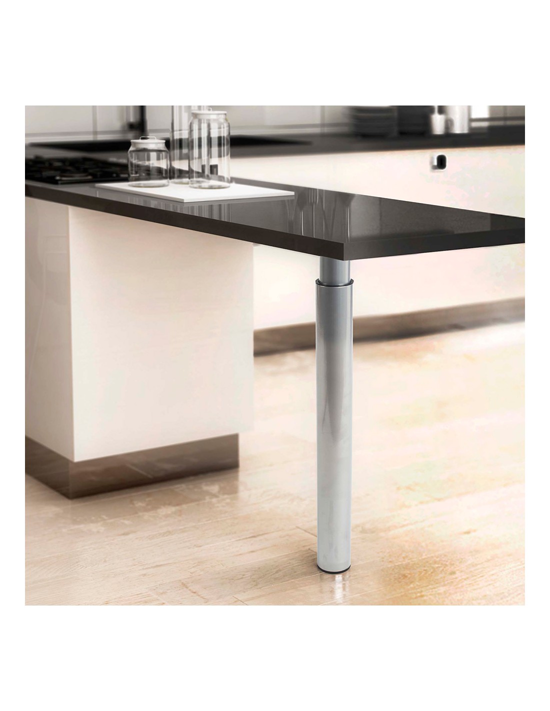 Pata extensible de acero cilíndrica de estilo moderno para mesas y encimeras. gracias a la versatilidad de este modelo es adecuada para una gran variedad de proyectos de bricolaje, diy o restauración, así como para todo tipo de muebles del hogar o espacios comerciales. altura de la pata 71/110cm. fabricado en acero en acabado aluminio. sistema de fijación atornillado. espiga metálica de fijación de métrica 10. dimensiones: ø6x71cm/110cm (diámetro/alto). peso máximo recomendado: 75kg. rei