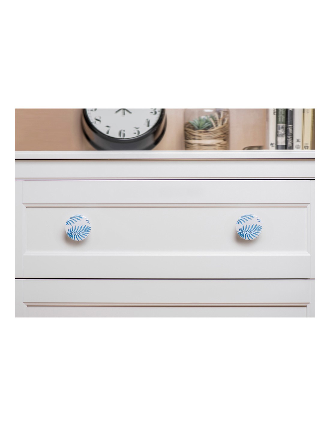 Blister con 2 pomos redondos para mueble de estilo contemporáneo lacado en blanco y con una bonita ilustración. ideal para darle un toque decorativo a cualquier tipo de estancia. tirador de puerta o cajón para todo todo tipo de muebles. ø38mm. fabricado en madera haya proveniente de madera de bosques sostenibles en acabado azul. fácil instalación con tornillos de rosca de métrica m4 incluidos. dimensiones: ø38x22mm (diametro/fondo). incluye 2 unid. rei