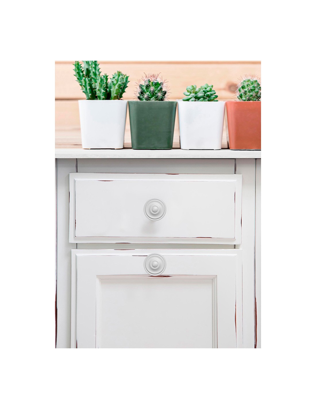 Blister con 4 pomos redondos para mueble de estilo clásico para conseguir un un toque vintage y equilibrado, ideal para todo tipo de estancias. ideal para renovar tus viejos tiradores o pomos y darle una nueva vida a tus muebles y un toque de estilo y personalidad. perfecto para proyectos de restauración o diy. ø35mm. fabricado en metal zamak acabado blanco poro. fácil instalación con tornillos de rosca de métrica m4 incluidos. dimensiones: ø35x26mm (diametro/fondo). incluye 4 unidades. rei