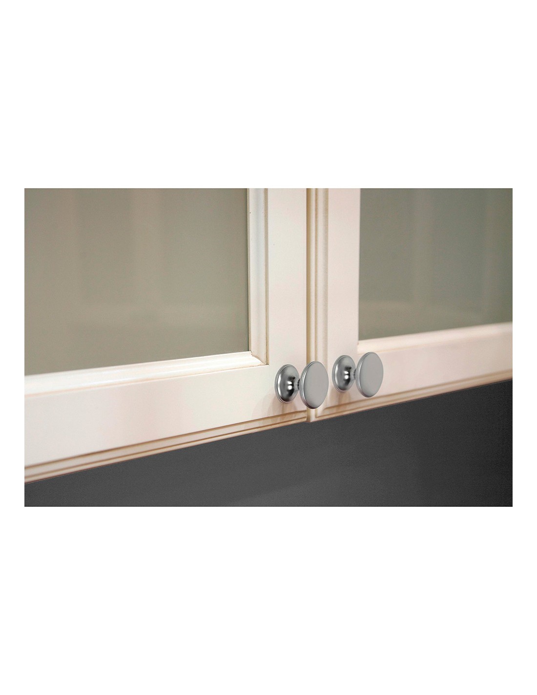 Blister con 4 pomos redondos para mueble de estilo contemporáneo y actual, muy versátil e ideal para integrar con distintos estilos decorativos. puede ser instalado de forma horizontal o vertical, indeferentemente en cajones o puertas de armario en todo todo tipo de muebles. su barra cilíndrica garantiza la comodidad y ergonomía en el agarre. ø33mm. fabricado en metal zamak acabado cromo mate. fácil instalación con tornillos de rosca de métrica m4 incluidos. dimensiones: ø33x27mm (diametro/fondo). incluye 4 unidades. rei
