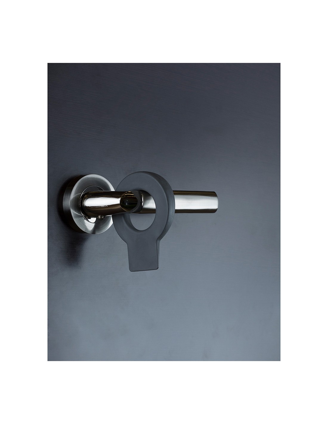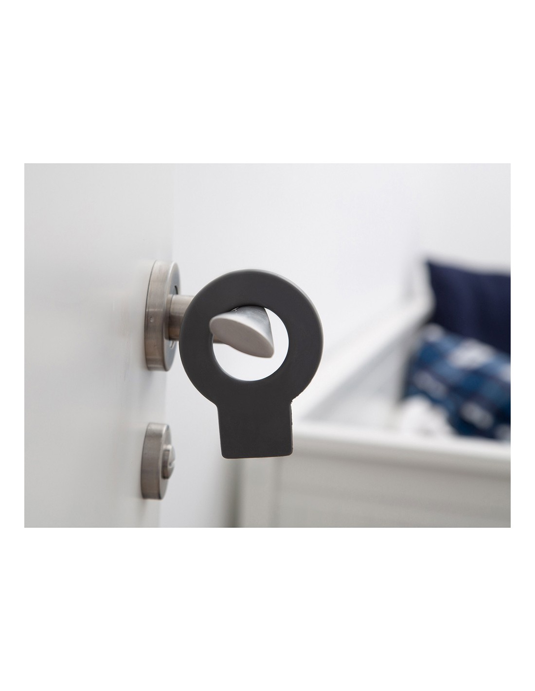 Retenedor de cuña para puerta lock. fabricado en tps antracita. protege paredes y puertas frente a impactos que puedan dañarlos. práctico, flexible y lavable. colgable en la manilla cuando no se precisa su uso. no necesita instalación. dimensiones: 64x82x15mm (ancho/fondo/alto). rei