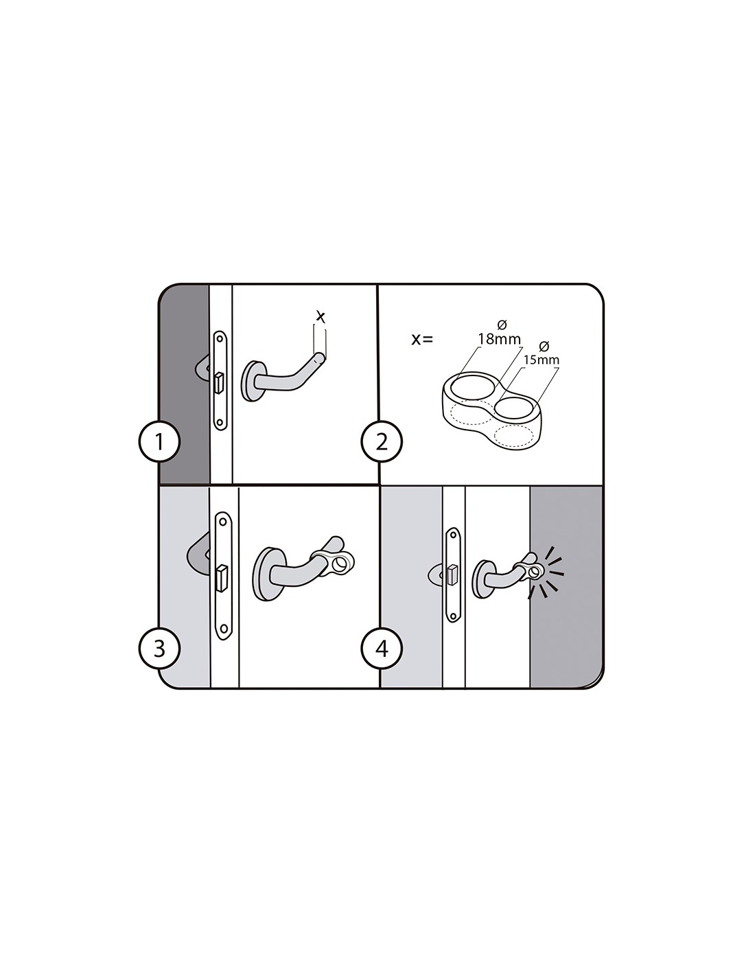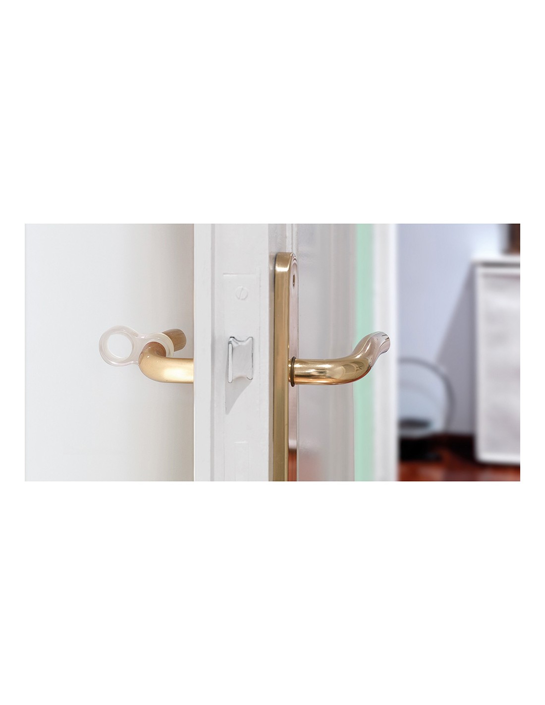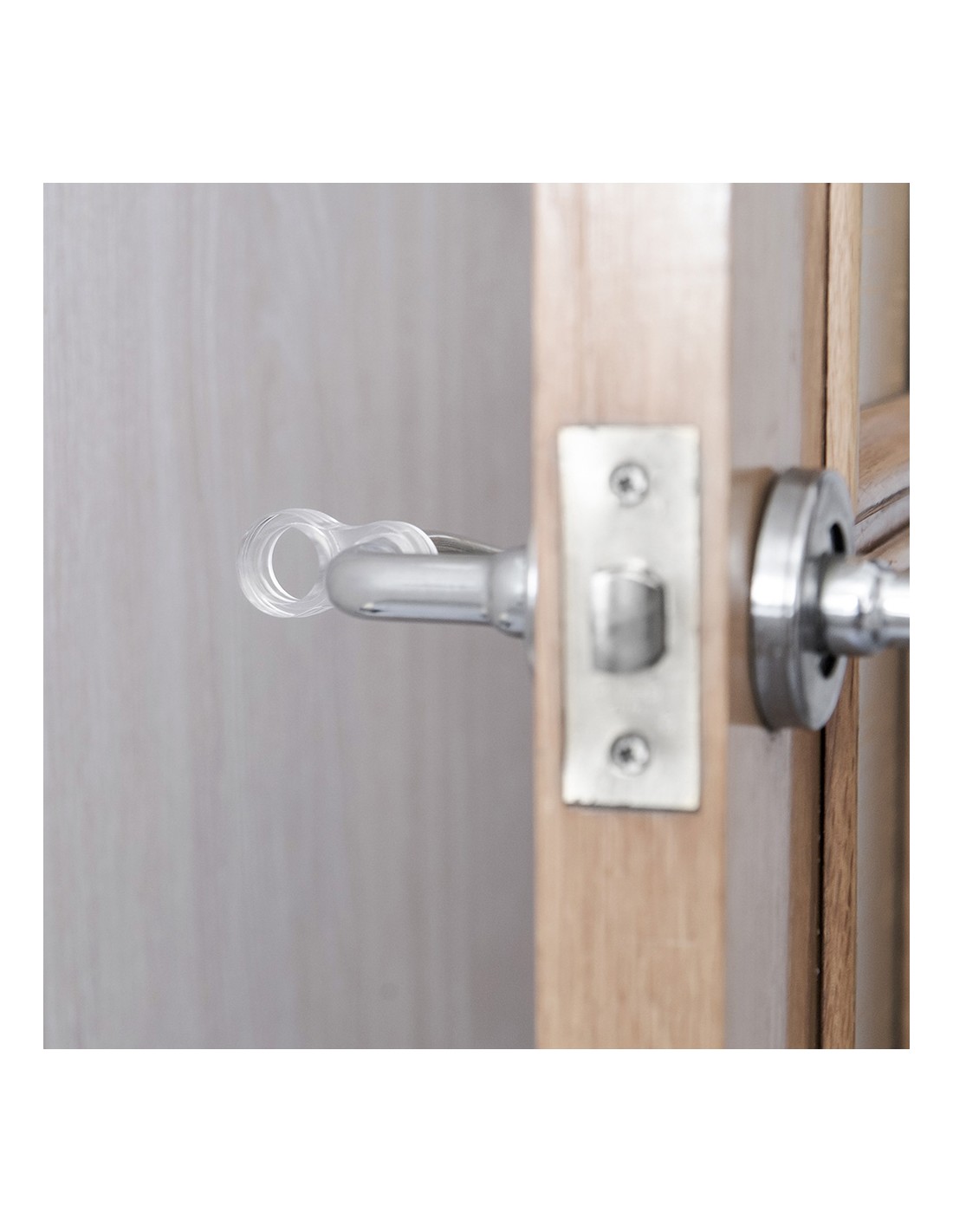 Pack 2 retenedores de manilla con uso en puertas y ventanas. modelo ocho. fabricado en tps flexible transparente. protege paredes y puertas frente a impactos que puedan dañarlos. práctico, flexible se adapta fácilmente para colocar en manillas de puertas y ventanas de distintas medidas. dimensiones: 13x24x46mm (ancho/fondo/alto). sistema de fijación colgable en manilla. no necesita instalación. rei