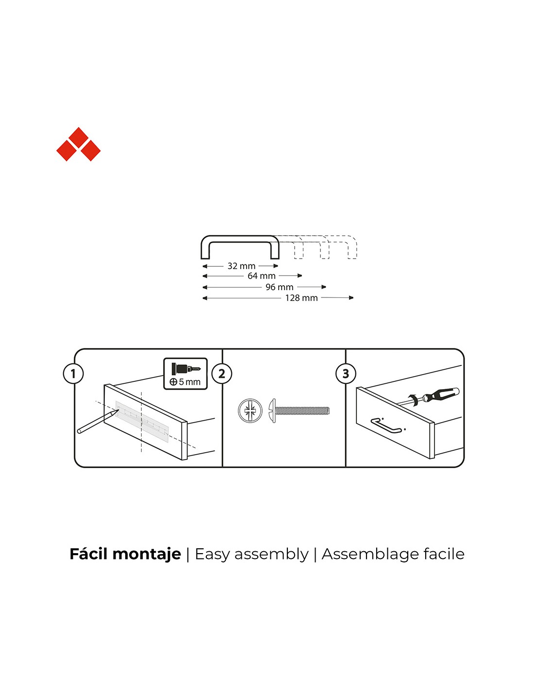 Blister con 4 tiradores de mueble tipo asa de estilo contemporáneo y actual, muy versátil e ideal para integrar con distintos estilos decorativos. puede ser instalado de forma horizontal o vertical, indeferentemente en cajones o puertas de armario en todo todo tipo de muebles. su barra cilíndrica garantiza la comodidad y ergonomía en el agarre. distancia entrepuntos 96mm. fabricado en metal zamak níquel bisú. fácil instalación con tornillos de rosca de métrica m4 incluidos. dimensiones: 127x19x24mm (ancho/fondo/alto). incluye 4 unid. rei
