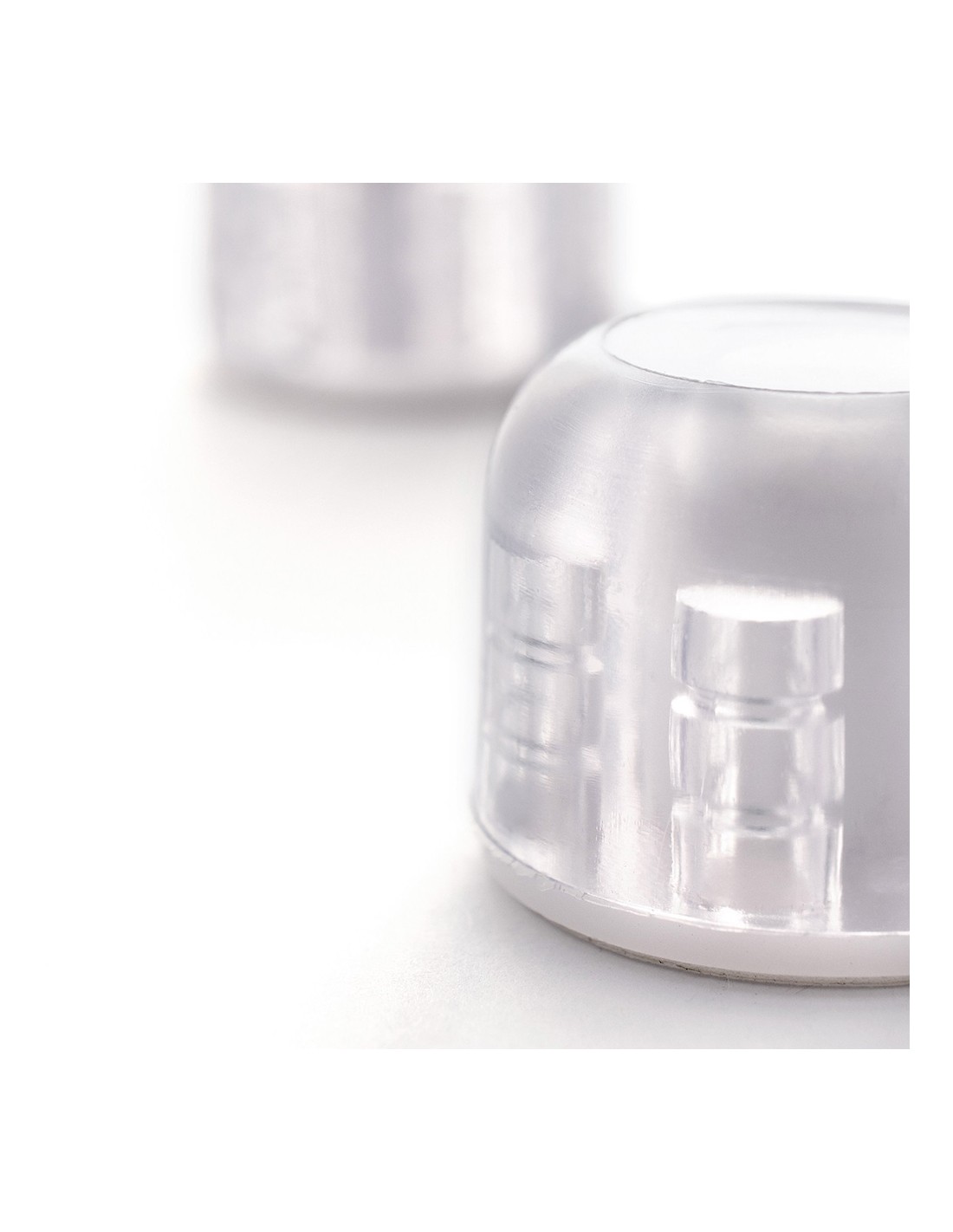 Tope de puerta adhesivo top transparente. fabricado en abs. protege paredes y puertas frente a impactos que puedan dañarlos. fácil instalación al suelo. dimensiones: 30x30x22mm (ancho/fondo/alto). sistema de fijación con autodhesivo incorporado. rei