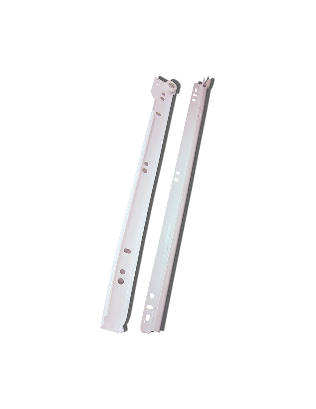 Juego de guia 400mm. dimensiones: 10x35mm (ancho/alto). en acero. para cajón con sistema estandar de fijación con tornillos. guias de extracción parcial. margen necesario para el montaje de 1-2mm aproximadamente. espesor de la chapa de 1mm. acabado blanco. soporta una carga máxima de 18kg. micel