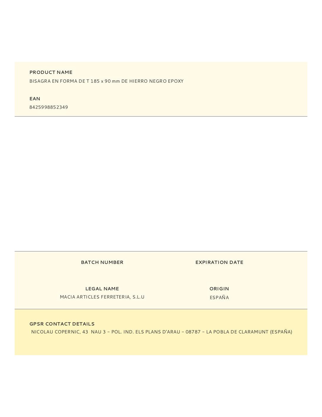 Bisagra en forma de t 185 x 90 mm de hierro negro epoxy