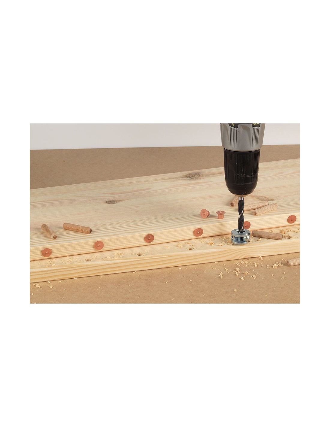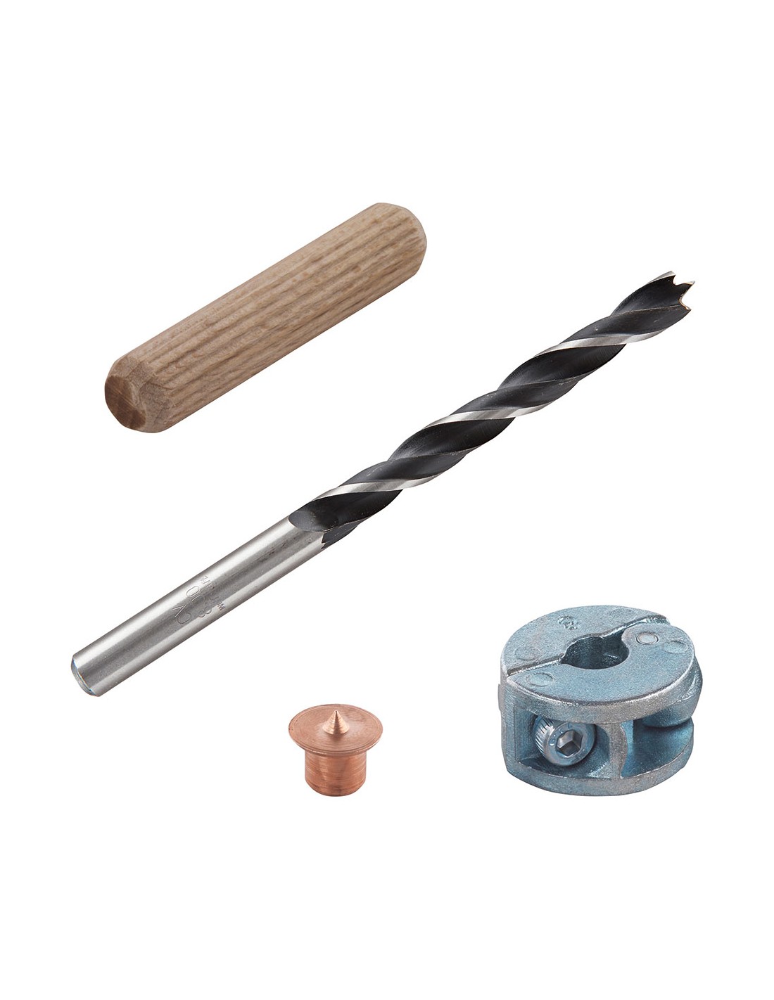 Juego de espigas de 28piezas juego para realizar uniones de espigas piezas en el juego: 28 piezas diámetro de trabajo: ø8mm juego de marcador, broca para madera, tope de profundidad y espigas corrugadas de madera para realizar ensamblajes de madera 4marcadores para marcación exacta de agujeros para espigas opuestos broca para madera con punta cortante rectificada de precisión y punta de centraje para ajuste fiable de la profundidad de perforación gracias al tope de profundidad peso: 0,108kg 2917000 wolfcraft
