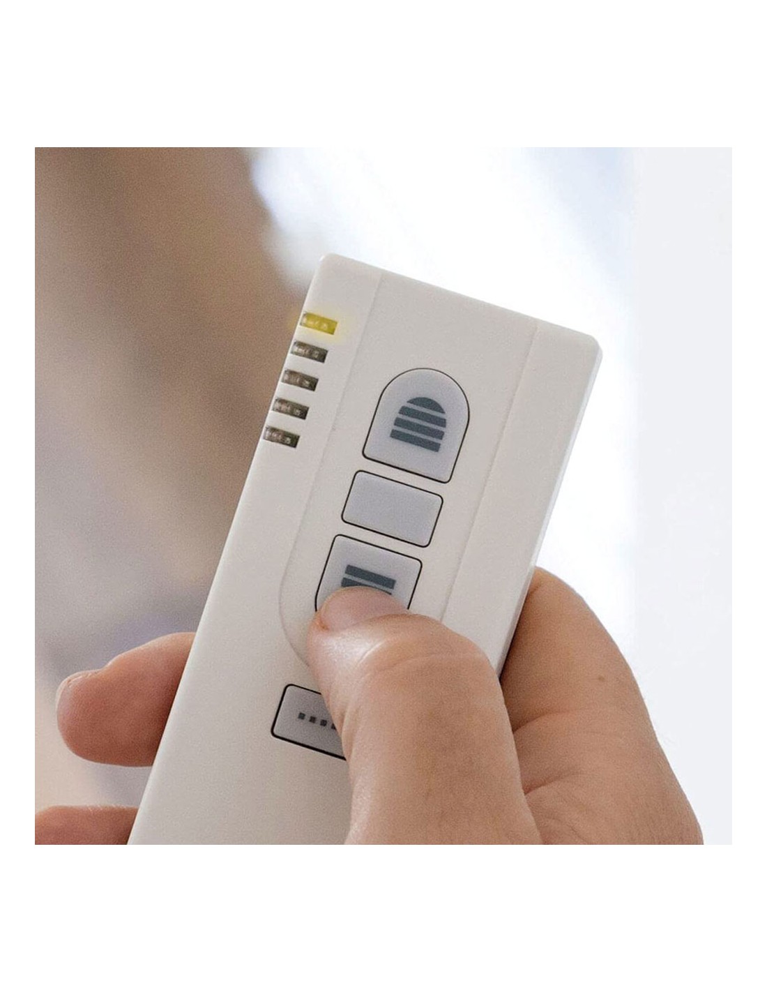 Mando a distancia para persianas 5 canales 20023 blanco. control remoto de persianas enrollables , parada, apertura, cierre de todos los motores inalámbricos. hasta 25 accionamientos inalámbricos en 5 grupos son controlables. hasta 20m. en interior. 5 señales led para ver que función está en uso. incluido soporte para pared (pegado o atornillado) 3 botones grandes fáciles de manejar. 2 pilas incluidas aaa. aprobado por r&tte