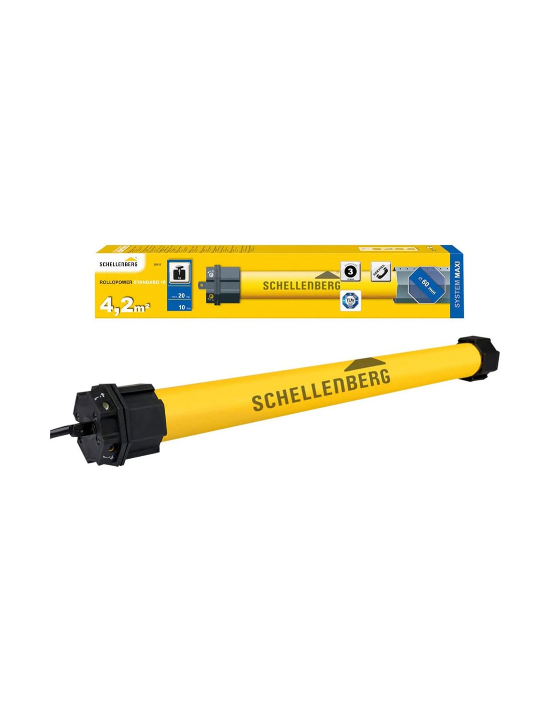 Motor persiana maxi standard 10nm. 20611. listo para instalar (cojinete de pared y adaptador incluidos) protección térmica/sobrecalentamiento. retención de datos durante cortes de energía el modo de espera consume 0,0 vatios. fuente de alimentación: 230 v / 50 hz. motor de persiana enrollable sin mantenimiento y de bajo desgaste. control mediante temporizador o interruptor de persiana enrollable control múltiple de diferentes motores con un relé posible control inalámbrico schellenberg posible con reequipamiento. aprobado por tüv y ce. 3 años de garantía