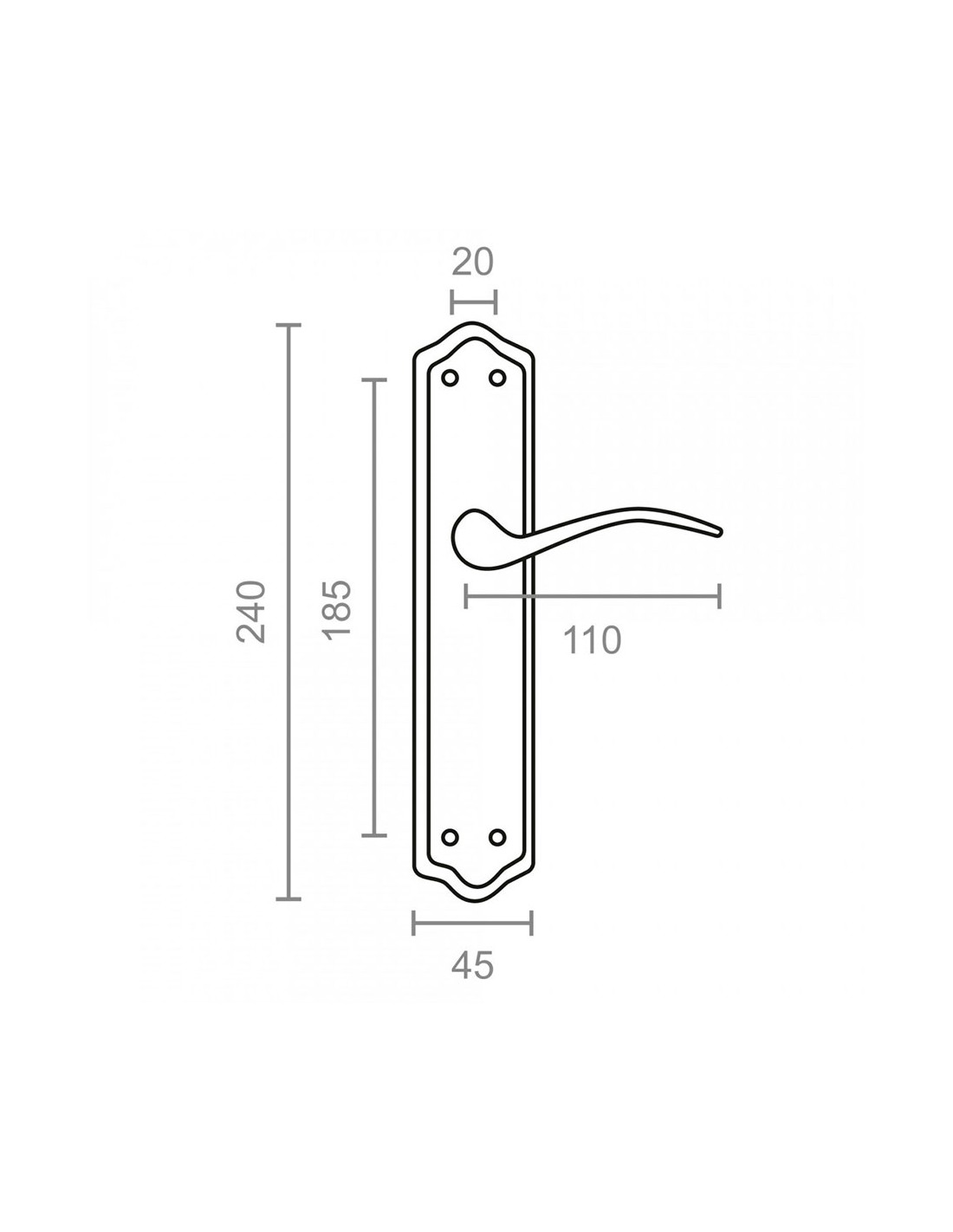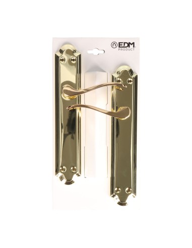 Juego de manillas 1777. medida de la placa 240 x 45 mm. material placa de acero y maneta de aluminio. acabado latonado (tornillos incluidos)