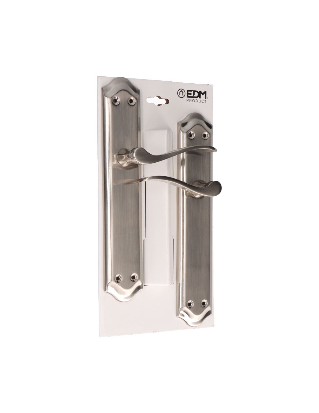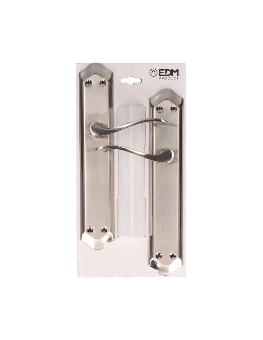 Juego de manillas 202. medida de la placa 256 x 47 mm. material placa de acero y maneta de aluminio. acabado níquel satinado (tornillos incluidos)
