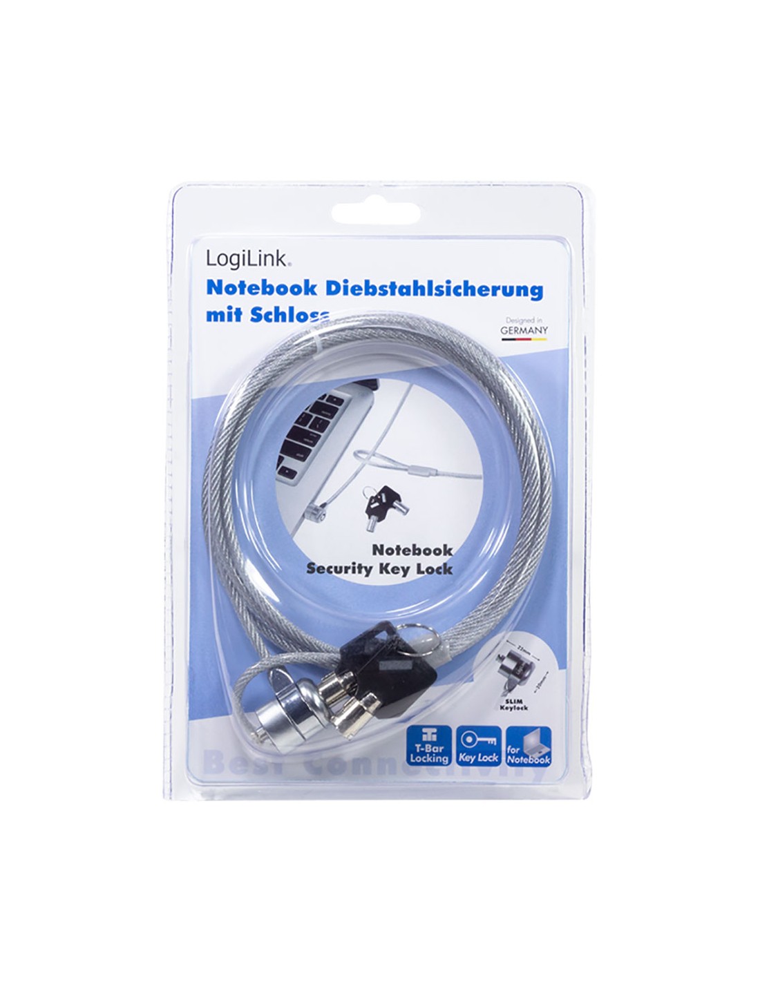 Bloqueo de seguridad para portátil, cerradura con 2 llaves. fijación en el portátil con barra de seguridad estándar, cable de acero resistente, cerradura de metal, cilindro de acero templado, longitud del cable: aprox, 1,5 metros