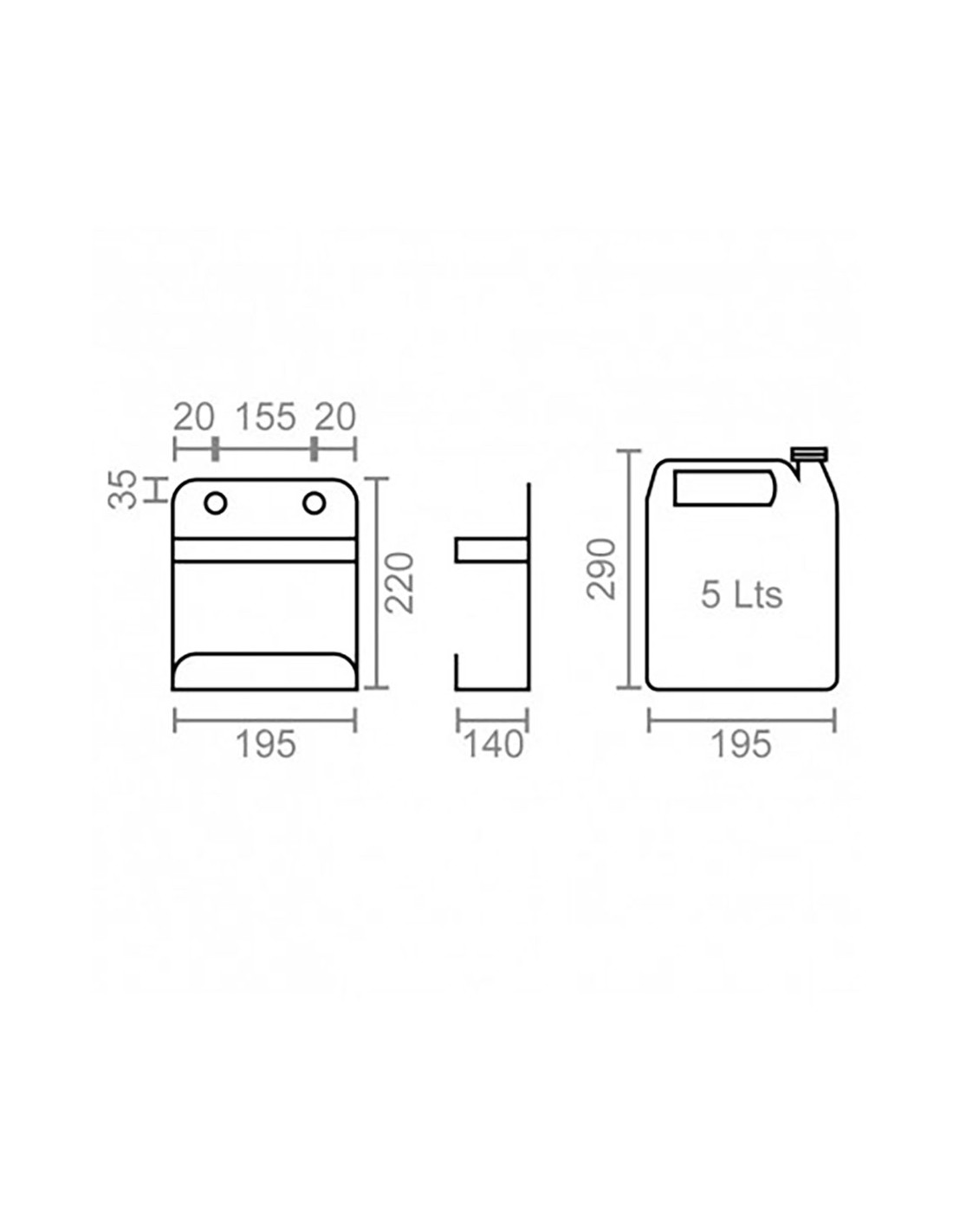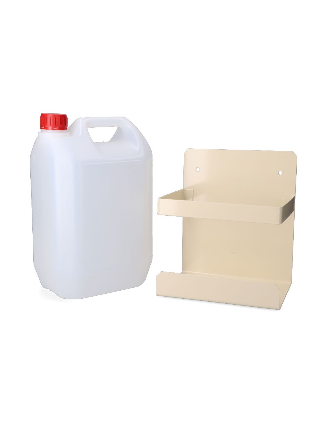 Soporte con garrafa de 5 litros, para aire acondicionado.medida del soporte: 19,5x14x22,5cm, medida con garrafa: 19,5x14x29cm, material de acero, acabado beige. micel