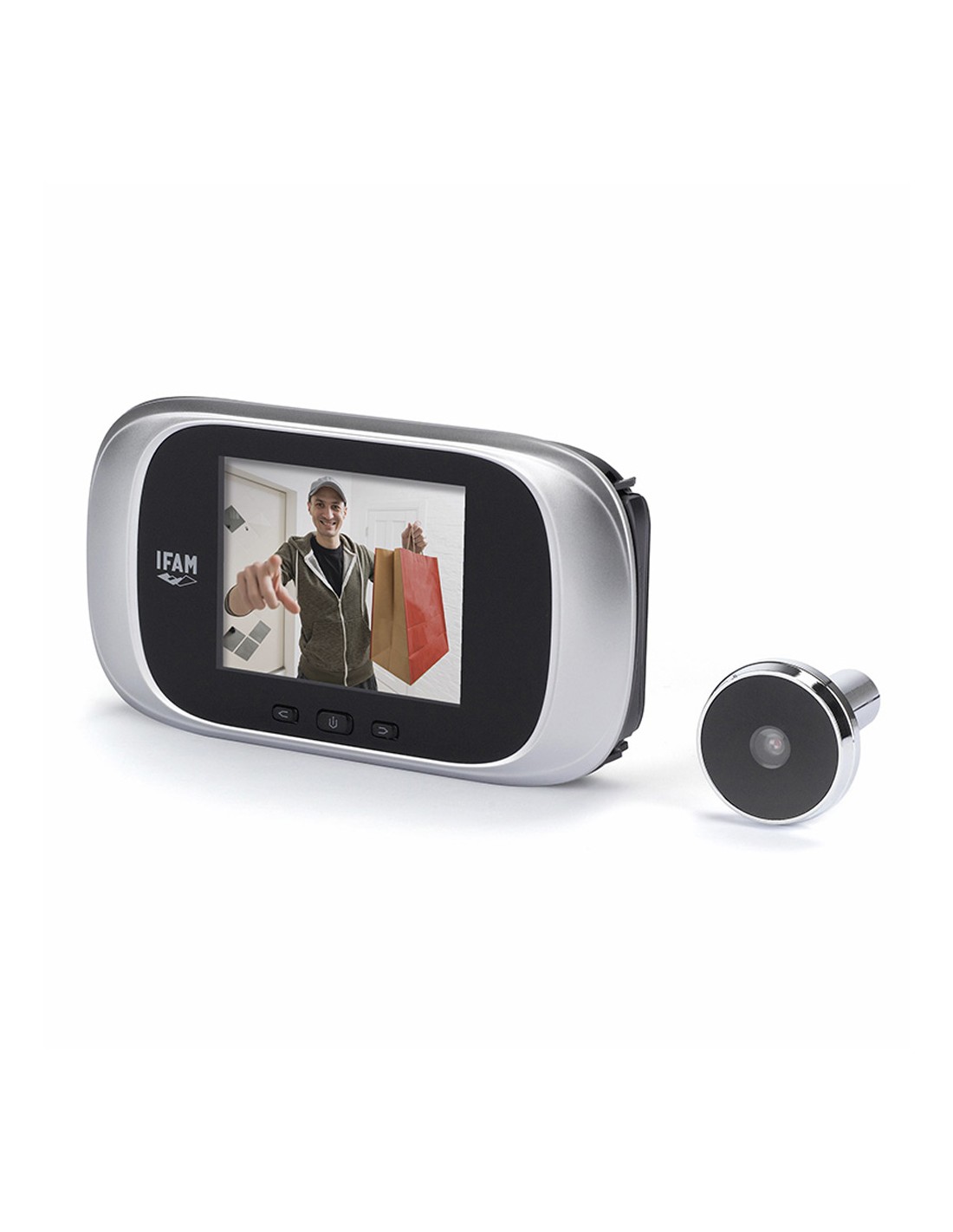 Pantalla lcd de 2,8” tft. resolución de 320×240. amplio ángulo de visión: 90 grados. función de cámara fotográfica incorporada. memoria interna de hasta 92 fotos. funciona con 4 pilas aaa. la pantalla se puede apagar automáticamente transcurridos unos segundos. apto para puertas de 35 a 120mm de grosor. apto para diámetros de agujero de puerta de 14 a 22mm. fácil instalación. acabados negro y plata. ifam