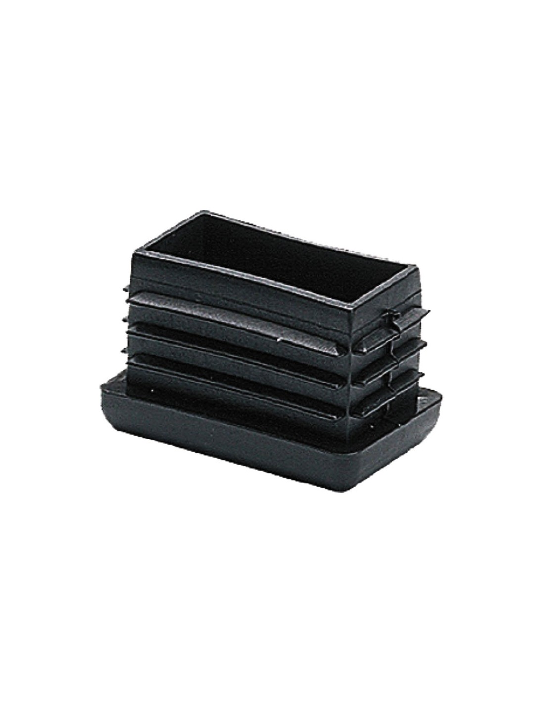 Caja con 25 conteras rectangulares con aletas cnt04. para poner en el interior de patas rectangulares de sillas, mesas, estanterías o similar. proporcionan una capa de protección a los extremos de los tubos, evitando que se dañen, se desgasten o dañen los suelos y otras superficies donde se apoyan. para tubos de medida exterior 10x40mm. la contera tiene un alto de 17mm. fabricado en polietileno, ofrece una alta resistencia. su acabado en color negro, es una buena opción para mejorar la estética del tubo donde se instala. micel