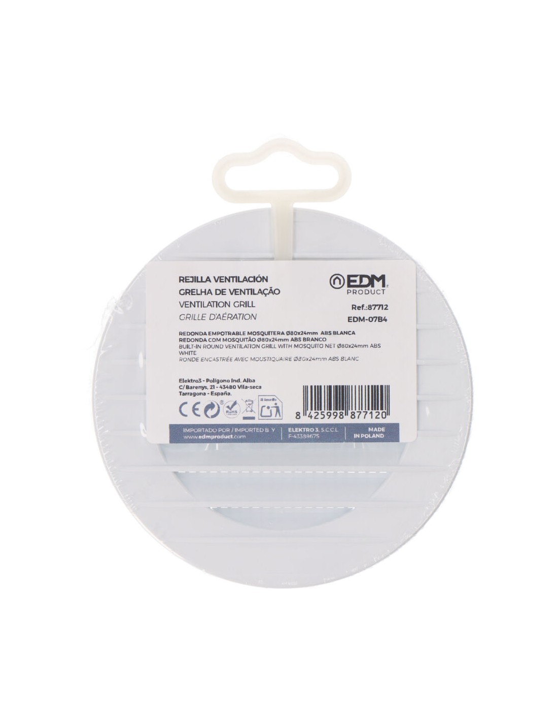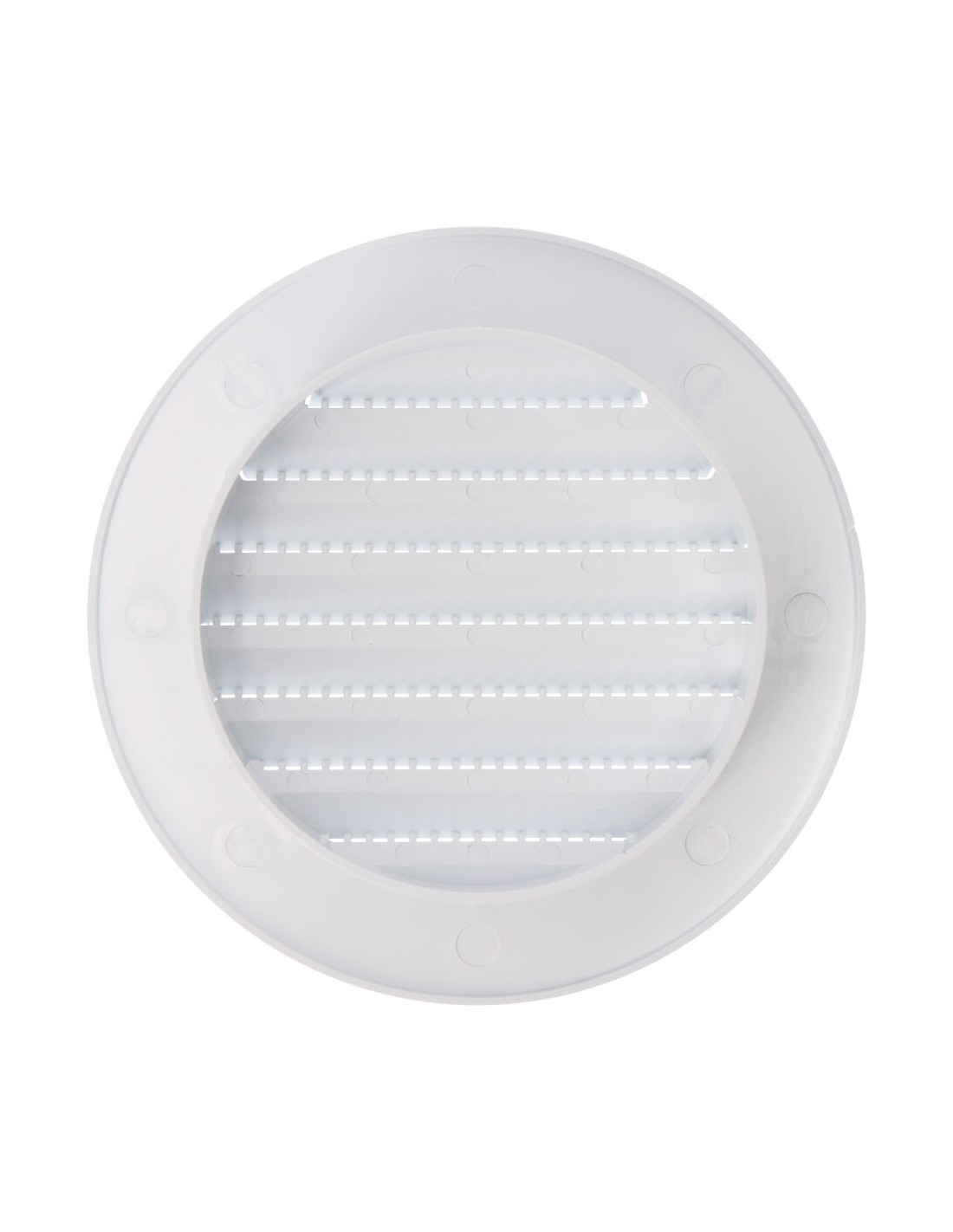Rejilla ventilación redonda empotrable de plástico con mosquitera, medida enclavamiento ø80xmm,medida ø10,7mm blanca