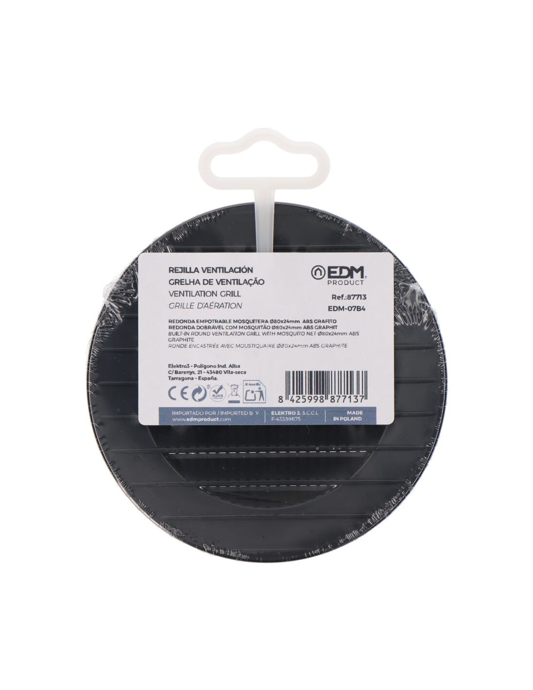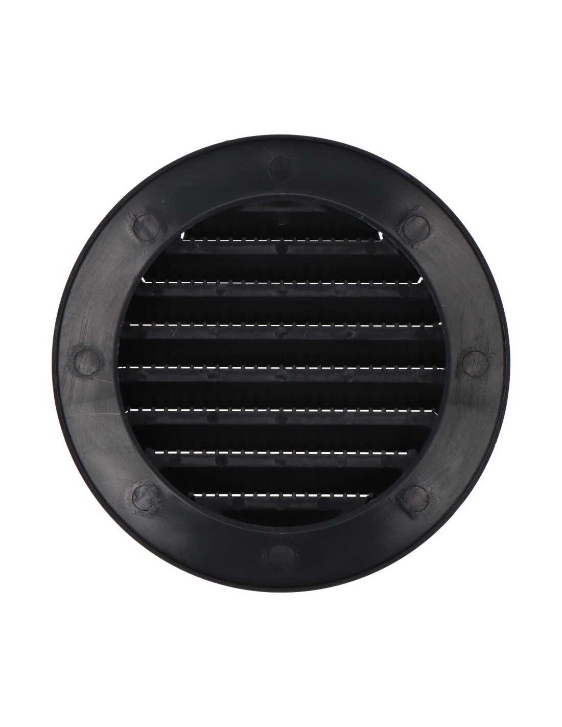 Rejilla ventilación redonda de plástico empotrable con mosquitera, medida enclavamiento: ø80mm, medida: 110mm, color gris antracita.