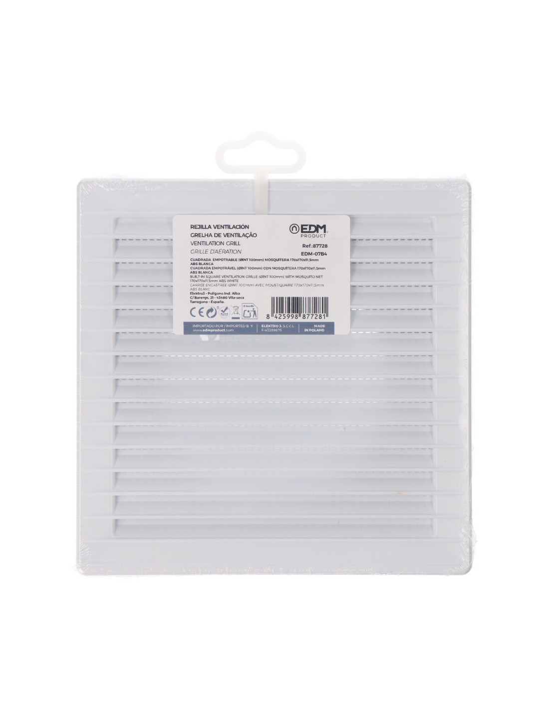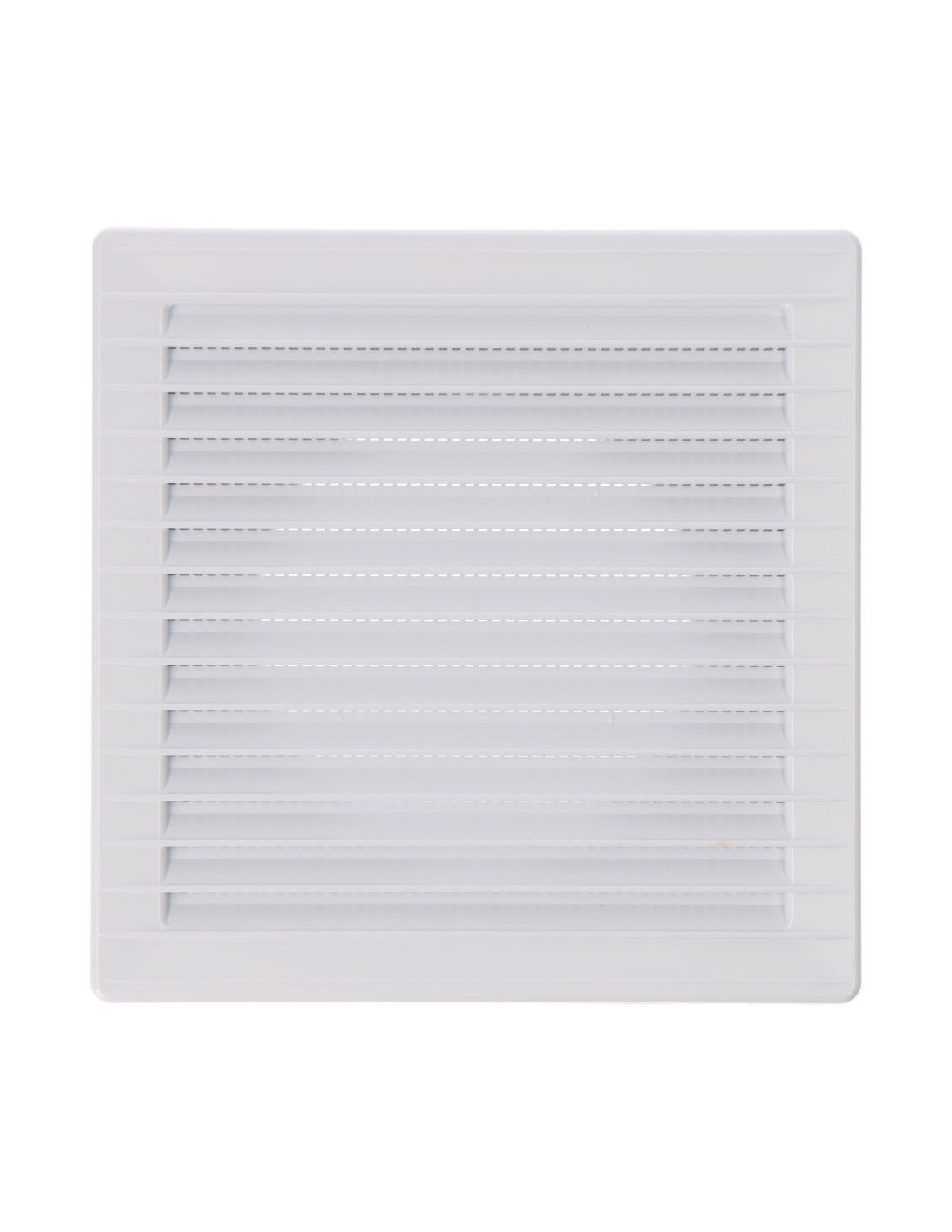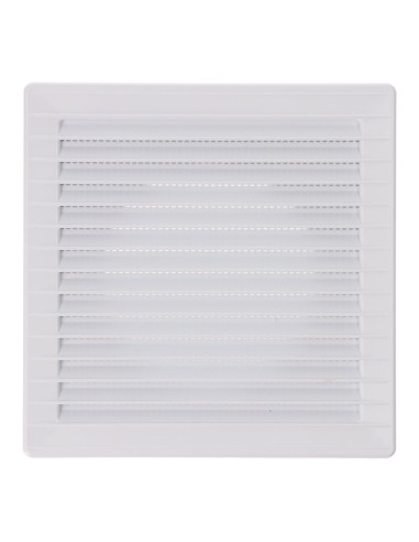 Rejilla ventilación cuadrada empotrable con mosquitera , enclavamiento ø 100mm, medida 170x170x10mm de plástico blanca