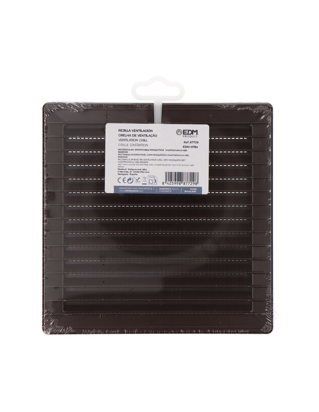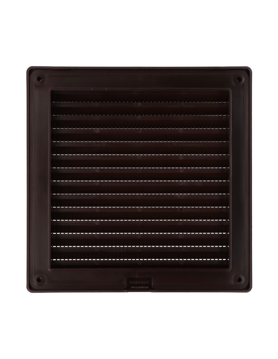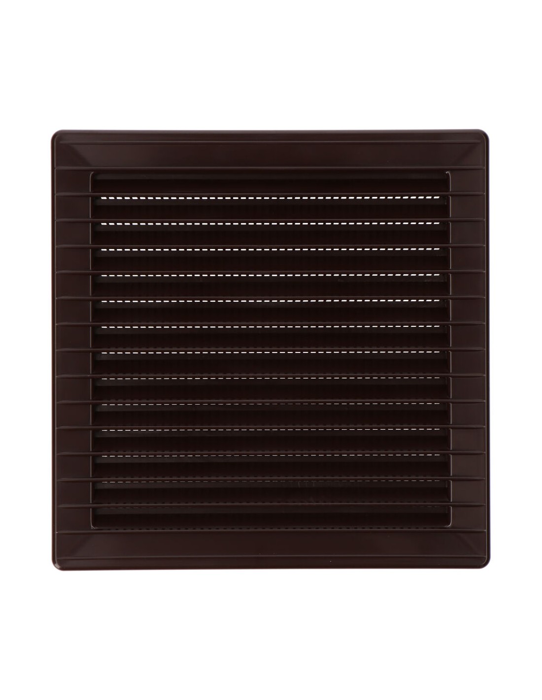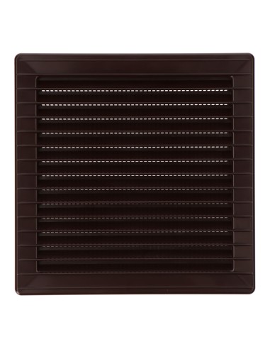 Rejilla ventilación cuadrada de plástico empotrable con mosquitera, medida enclavamiento 140 x 140mm, medida170 x 170mm marrón