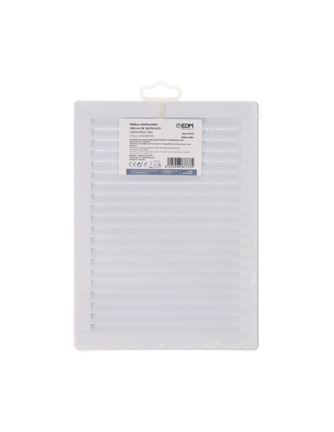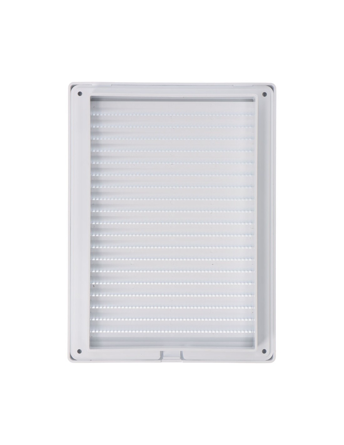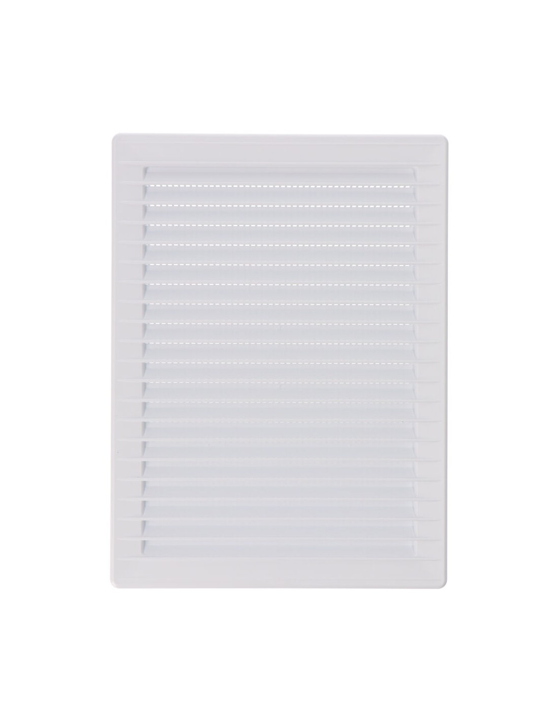 Rejilla ventilacíón rectangular empotrable con mosquitera de plástico, medida enclavamiento 137x207mm, medida 17x230mm blanco