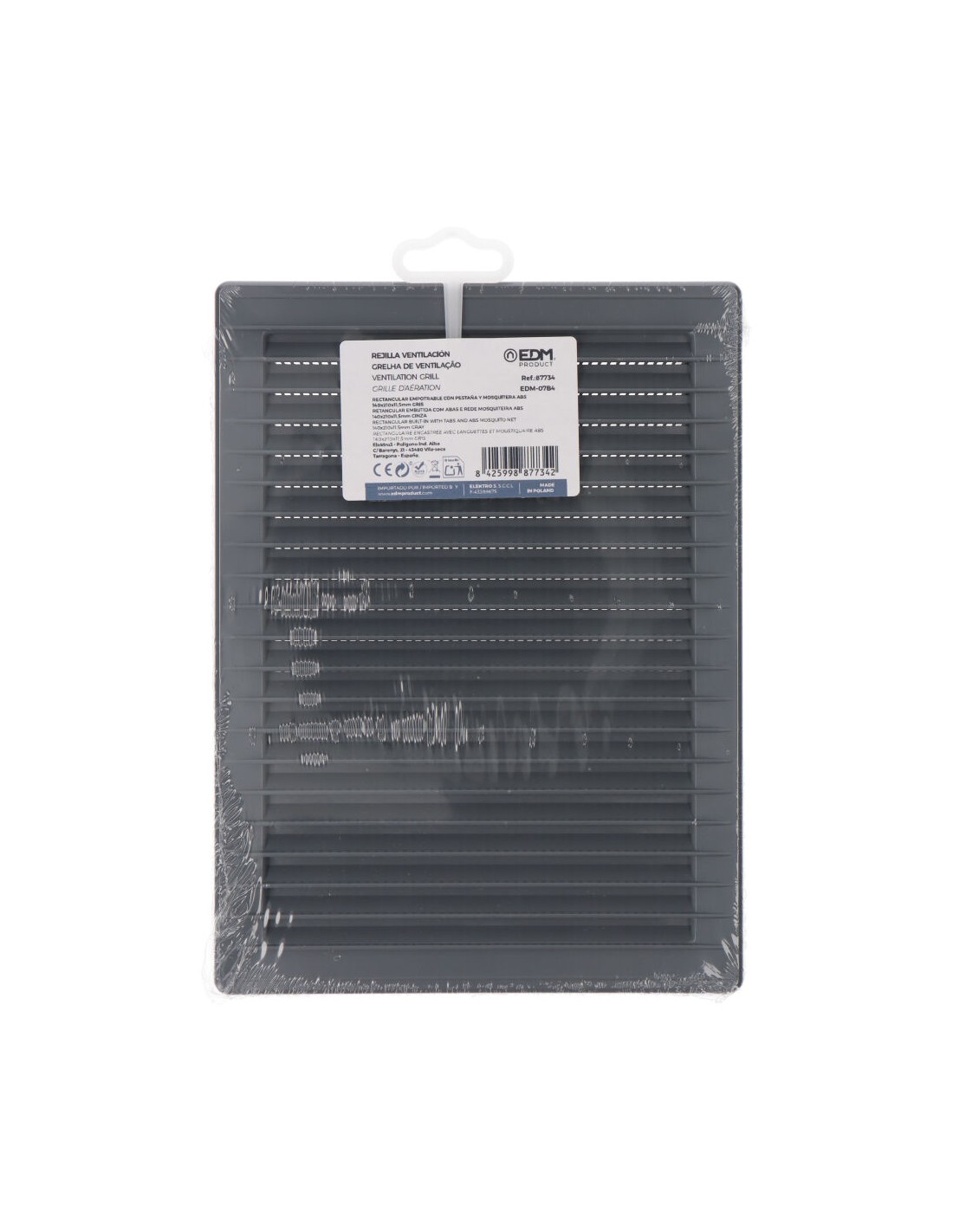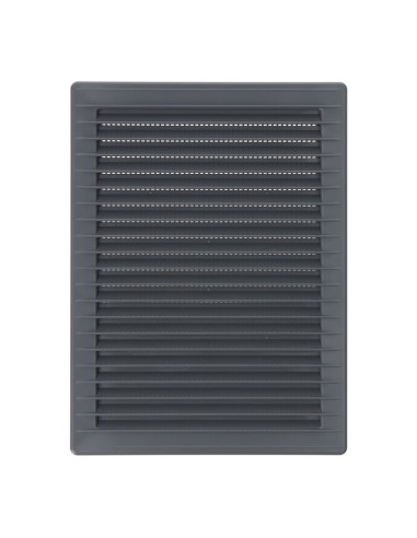 Rejilla ventilacíón rectangular de plástico empotrable con mosquitera, medida enclavamiento 135x205mm, medida 17x23mm gris