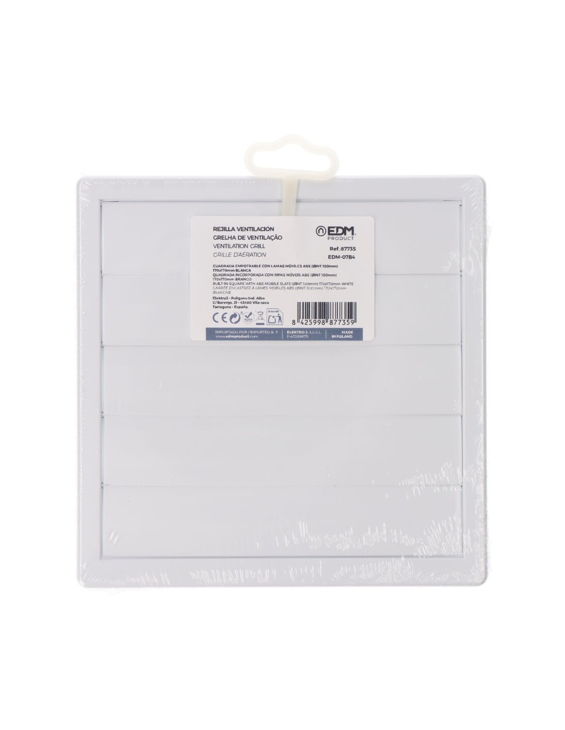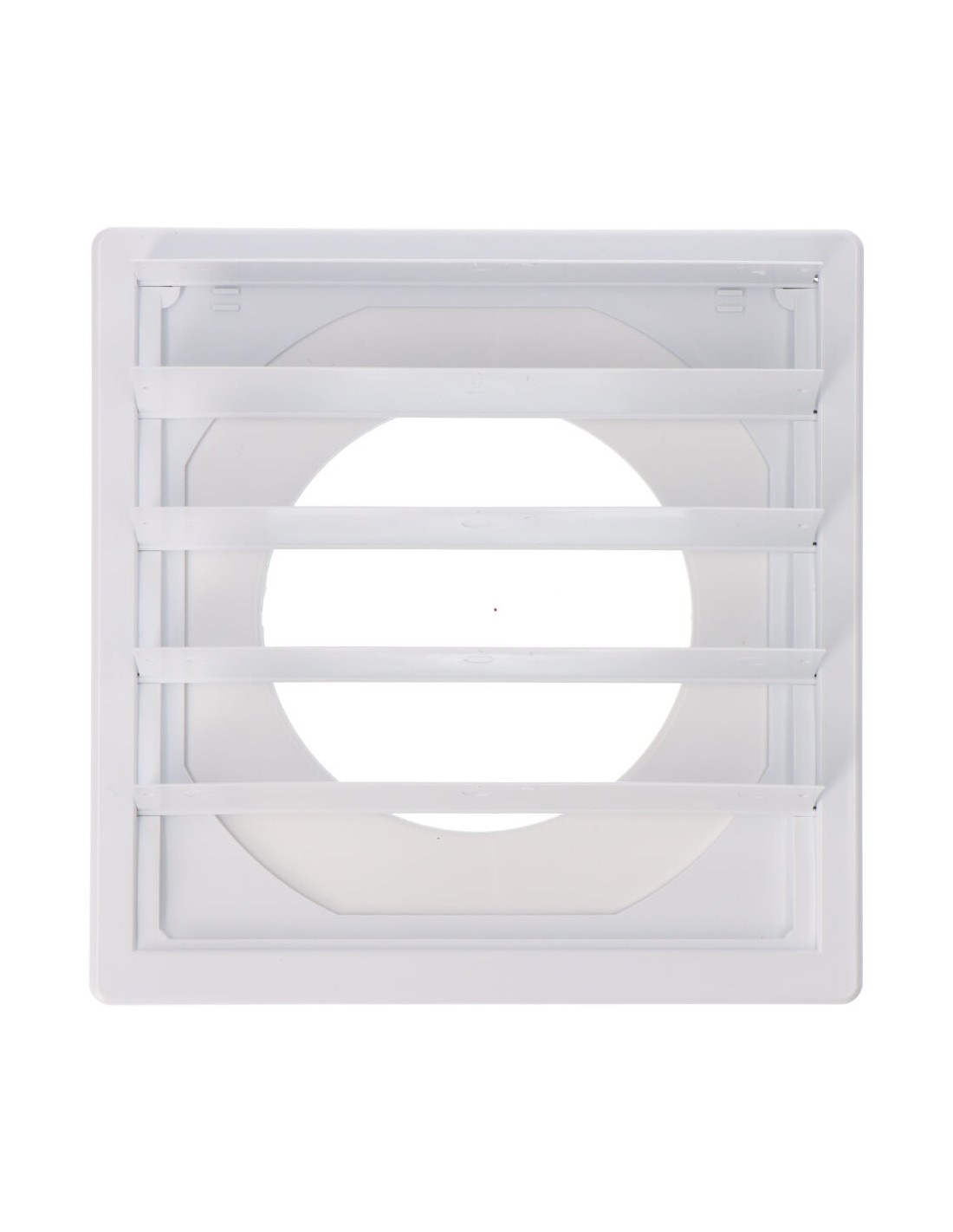 Rejilla ventilación cuadrada de plástico, empotrable con lamas móviles, medida enclavamiento ø 10mm, medida 170x170mm blanca