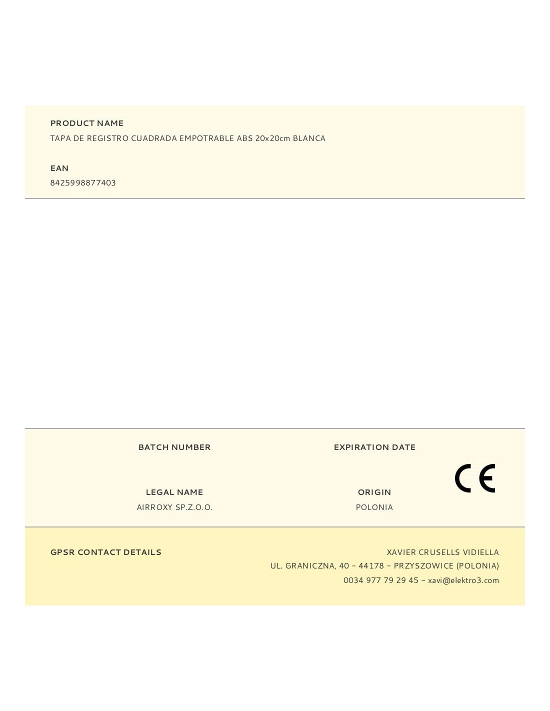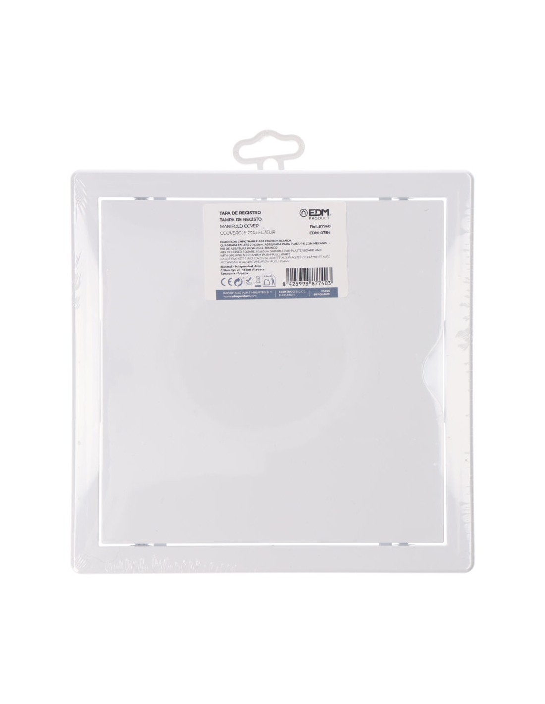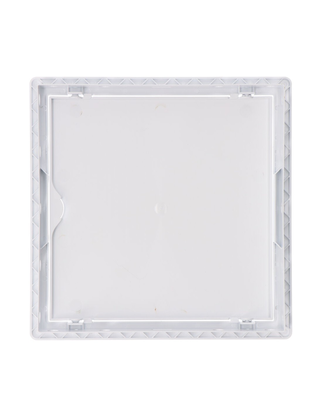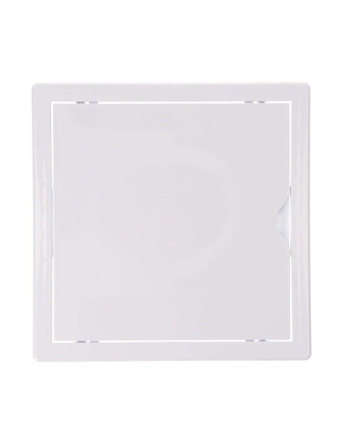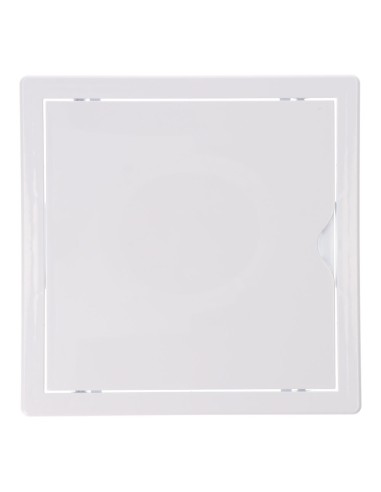 Tapa de registro cuadrada empotrable de plástico. medida enclavamiento 20x20cm, medida 21.5x21.5cm. apto para pladur y con mecanismo de apertura (push-pull), blanca