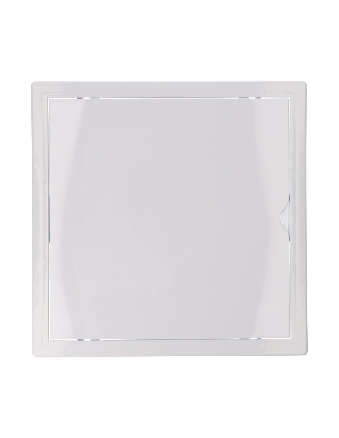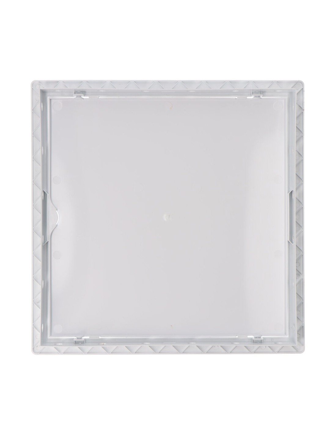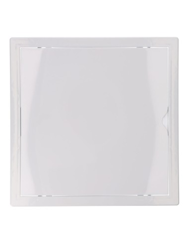 Tapa de registro cuadrada de plástico empotrable, medida enclavamiento 30x30cm, medida 32,5x32,5cm. apto para pladur y con mecanismo de apertura (push-pull), blanca
