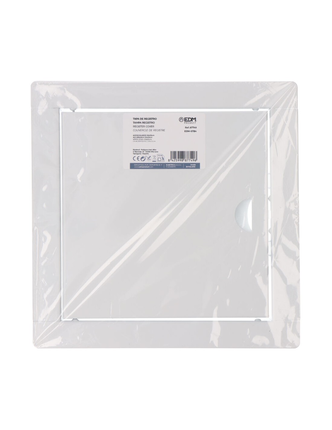 Tapa de registro cuadrada empotrable de acero, medida enclavamiento 20x20cm , medida 24,5x24.5cm blanca