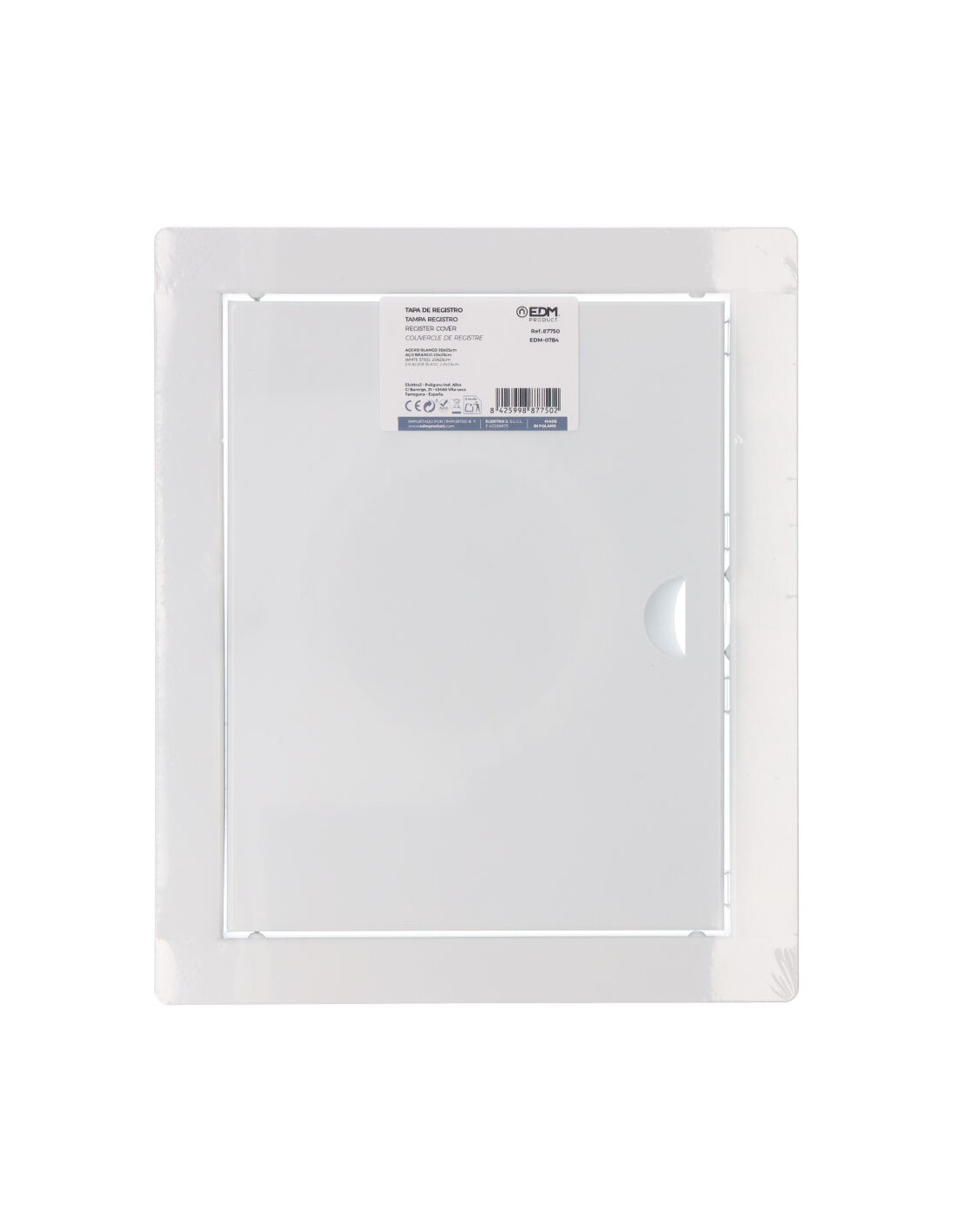 Tapa de registro rectangular de acero empotrable, medida enclavamiento 20x25cm, medida 24,5x29.5cm blanco