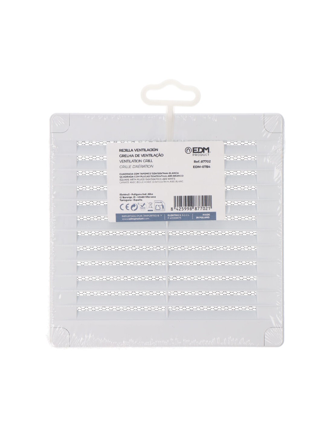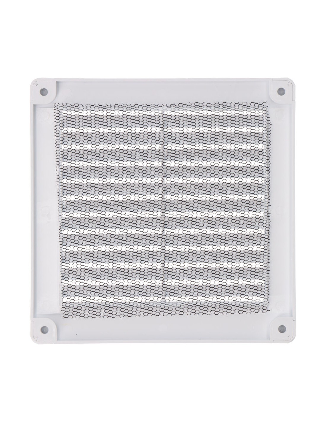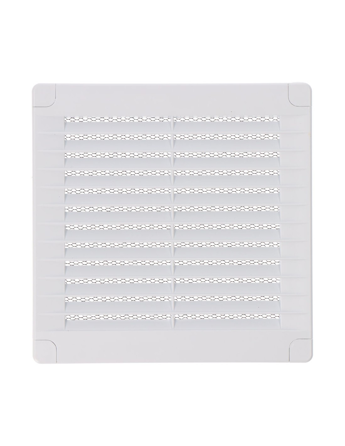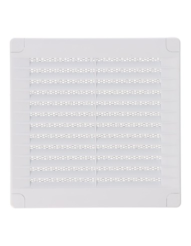 Rejilla ventilación de plástico, cuadrada con tapones y mosquitera 150x150x7mm blanca