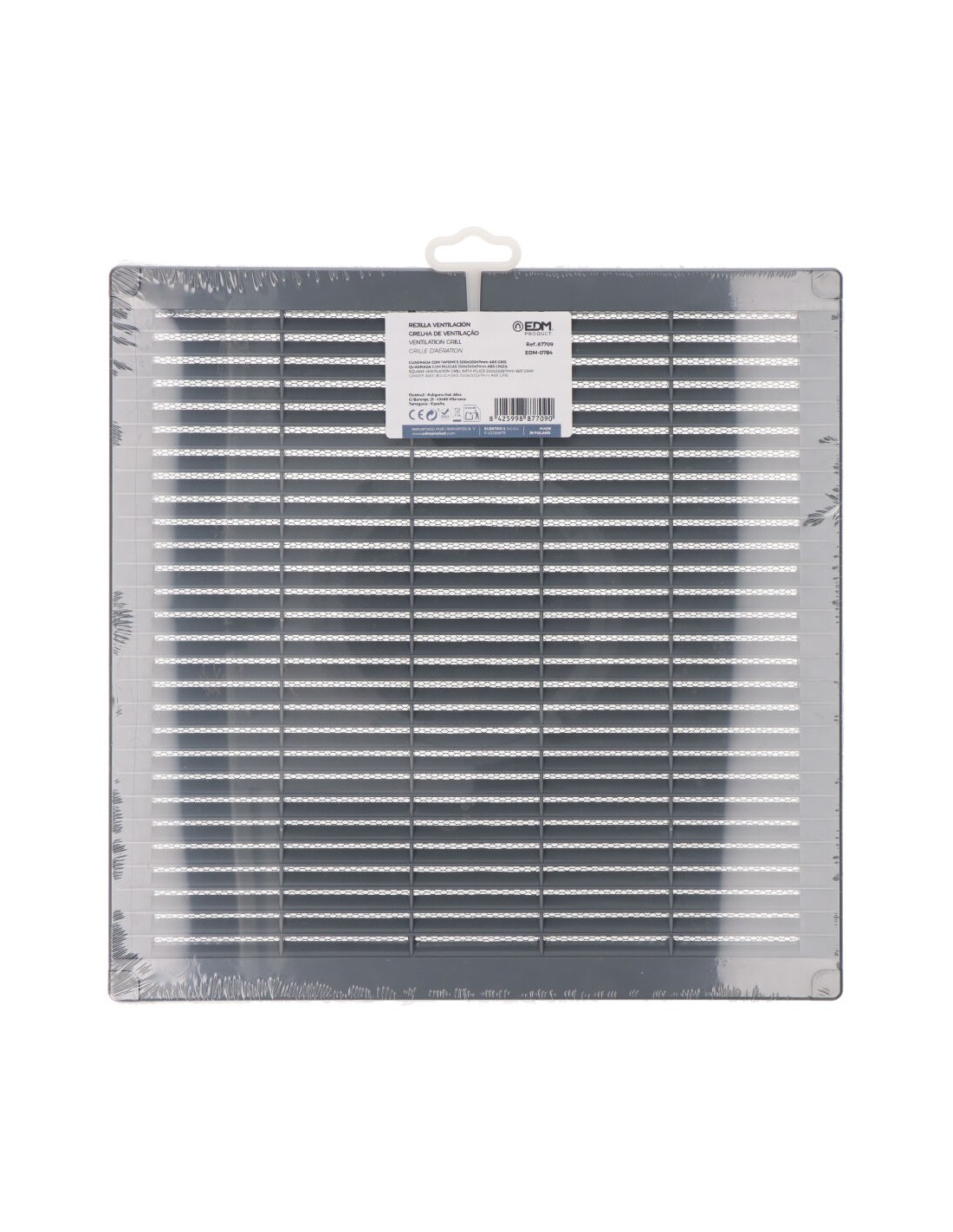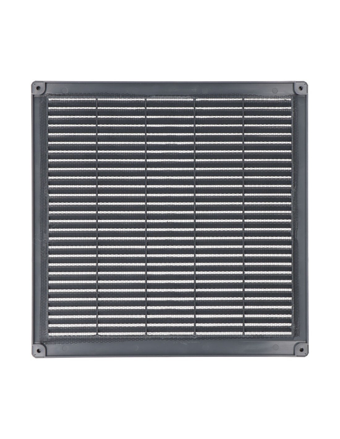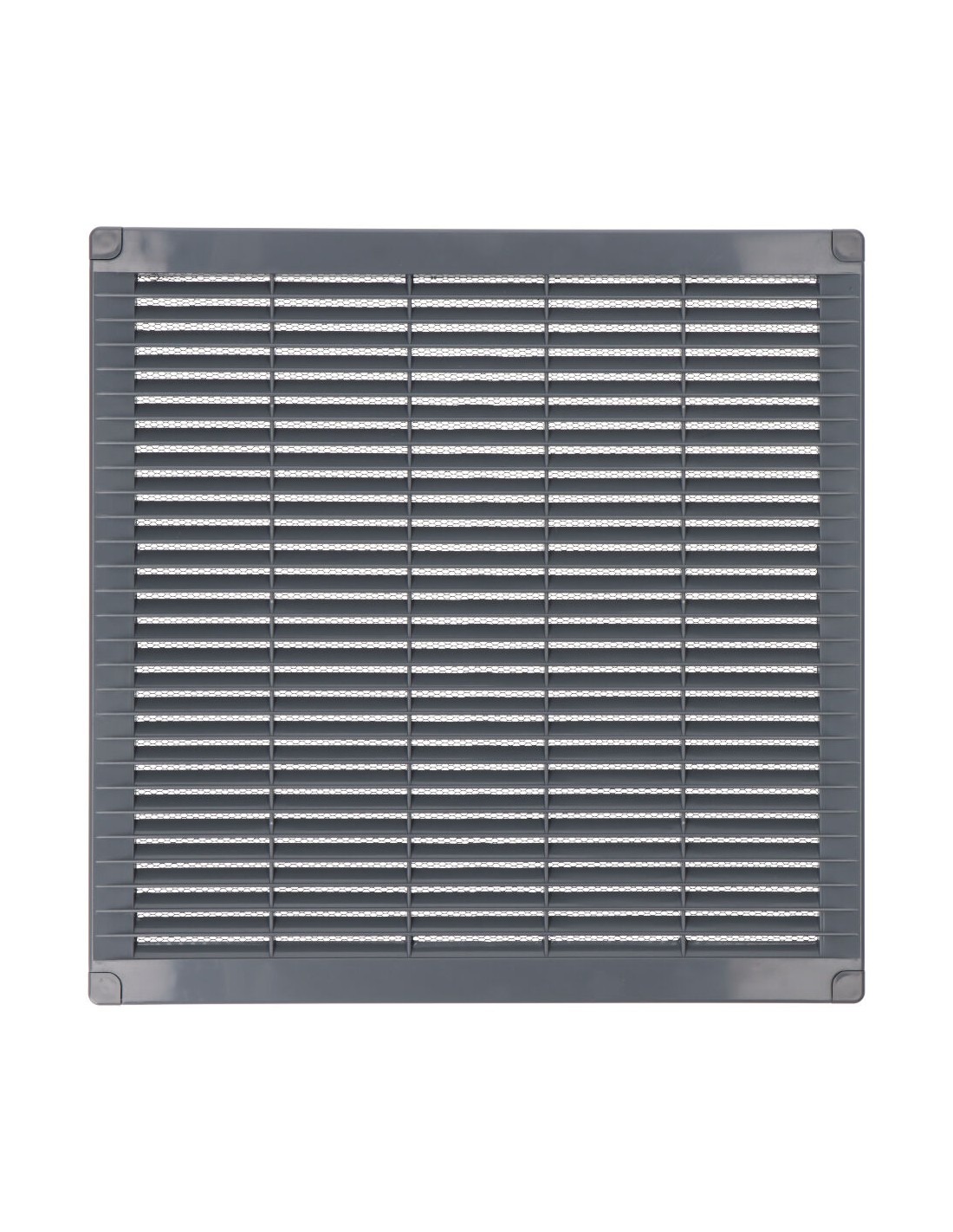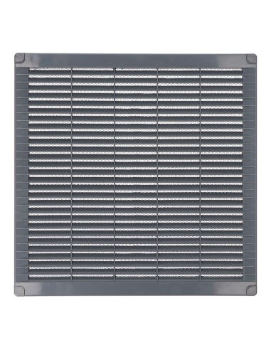 Rejilla ventilación cuadrada de plástico con tapones y mosquitera 300x300x7mm gris