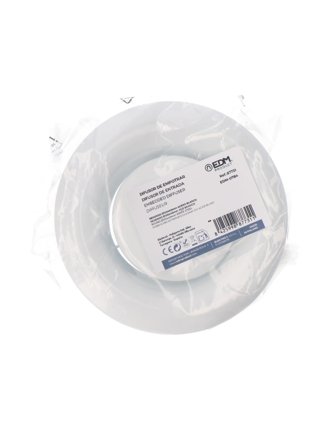 Difusor de empotrar redondo de plástico y aluminio, medida enclavamiento ø95x47mm medida ø140mm blanco