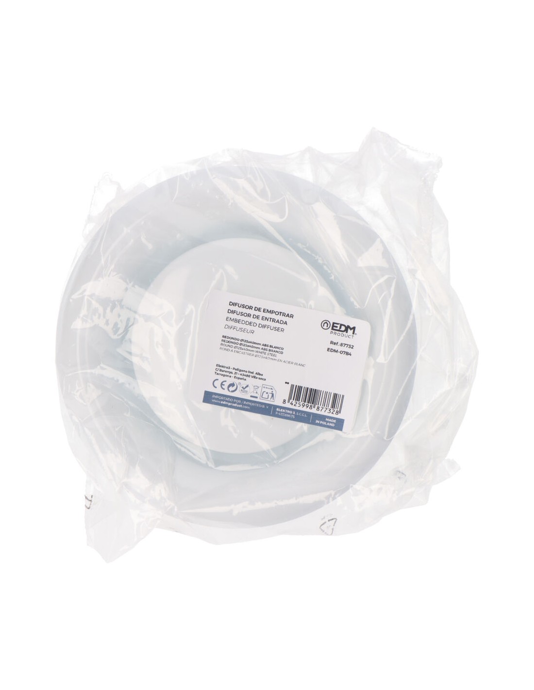 Difusor de empotrar redondo de plástico y aluminio, medida enclavamiento ø125x40mm medida ø 165mm blanco