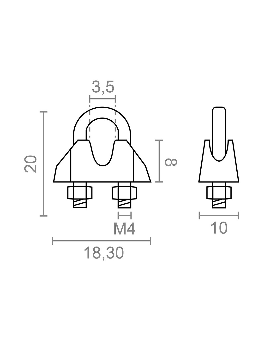 Sujetacable din-741 sjt01, acero galvanizado, m4, 1/8". 2 unidades
