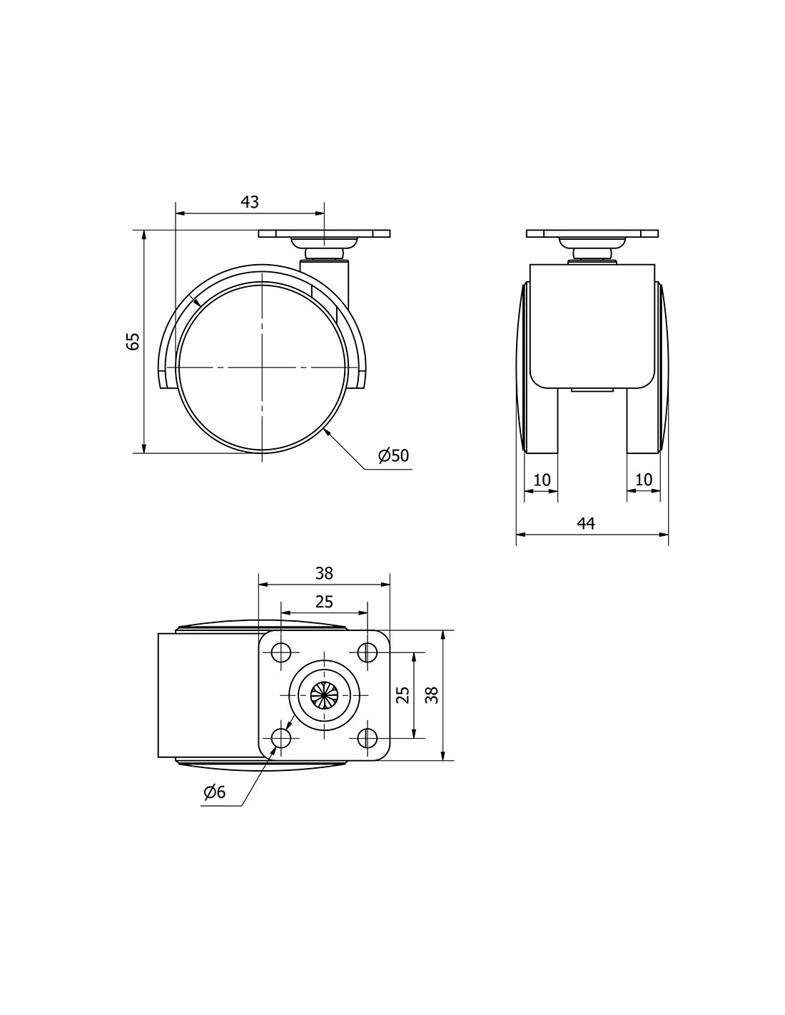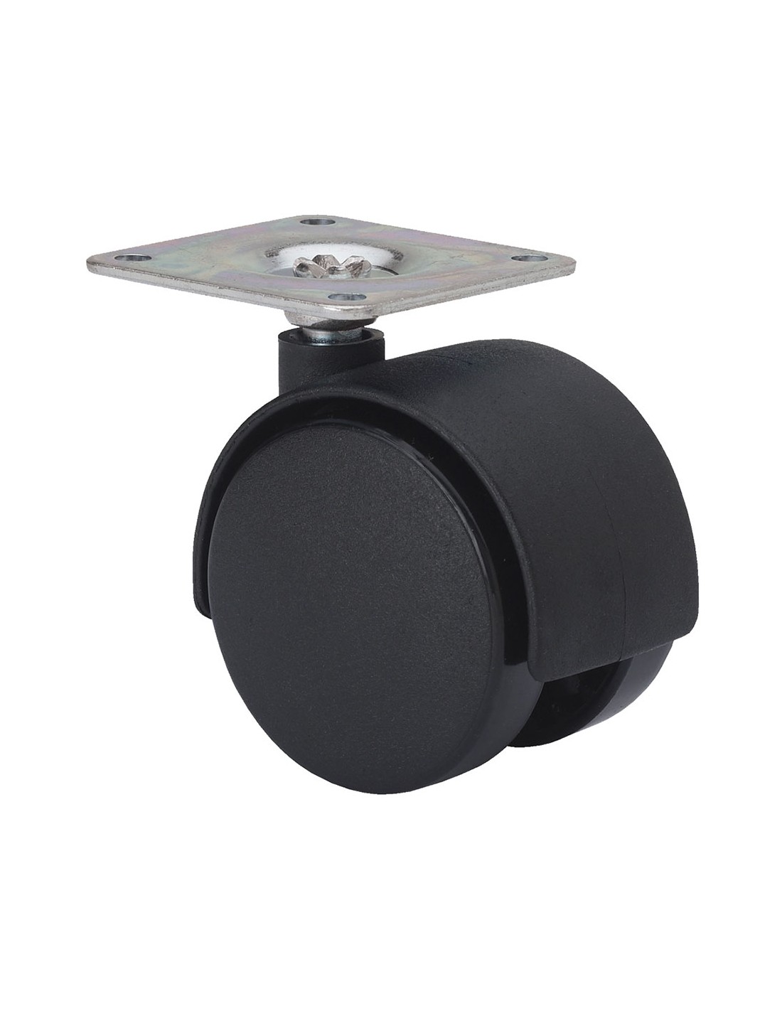 Rueda giratoria con placa y eje liso, color negro, material: polipropileno- plástico, carga máxima de 50 kg, ø 5 cm